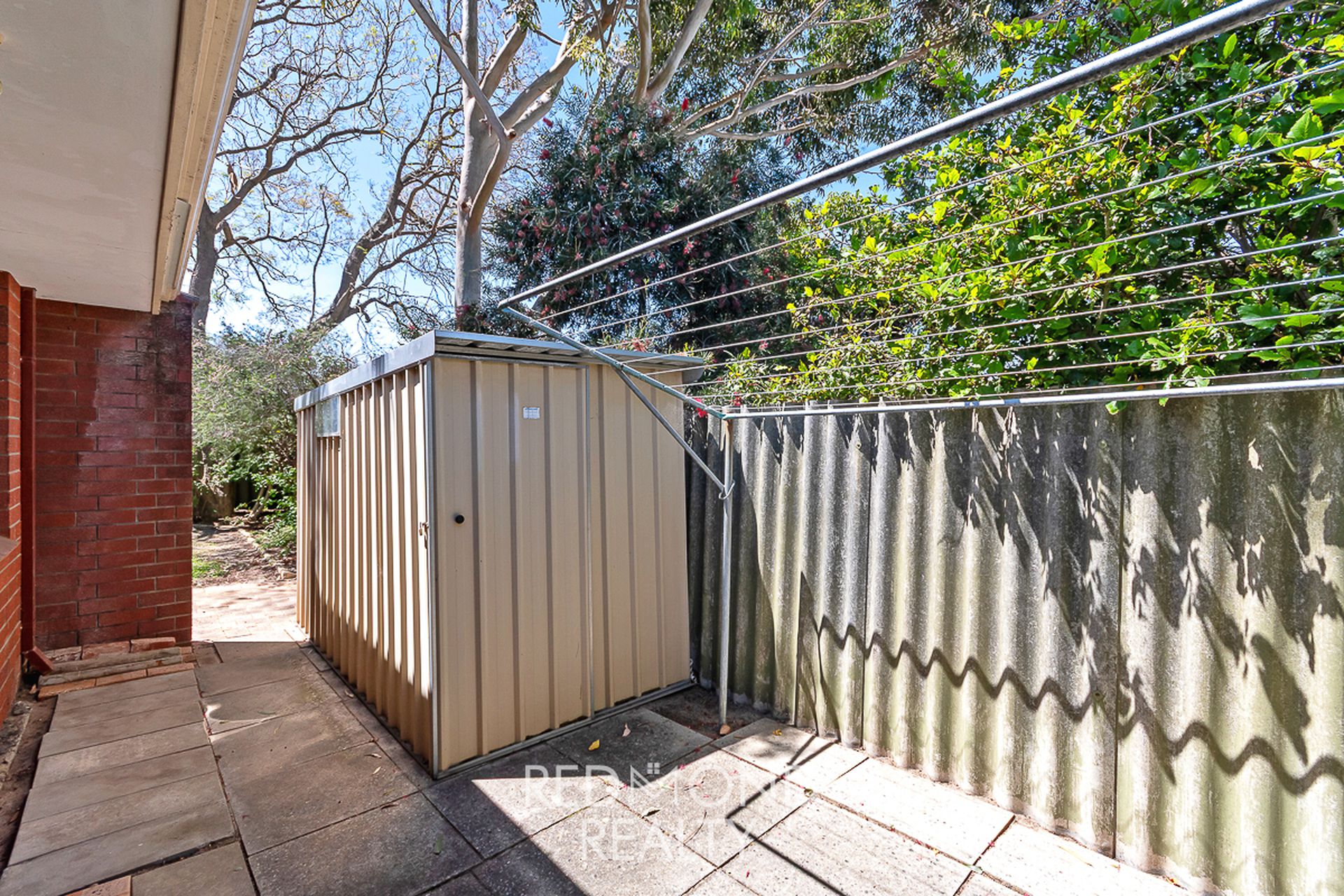 - Storage shed and side access to the backyard