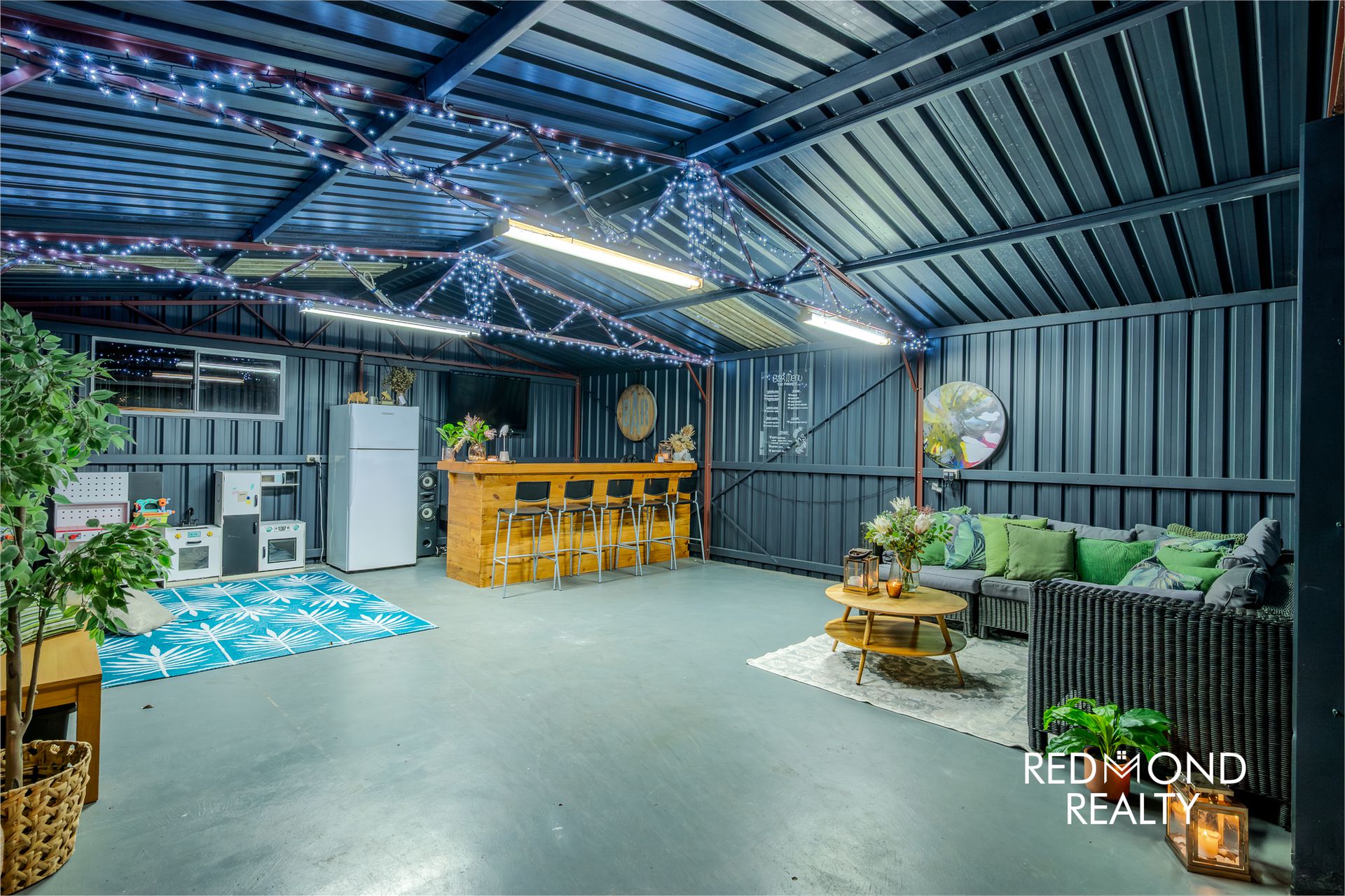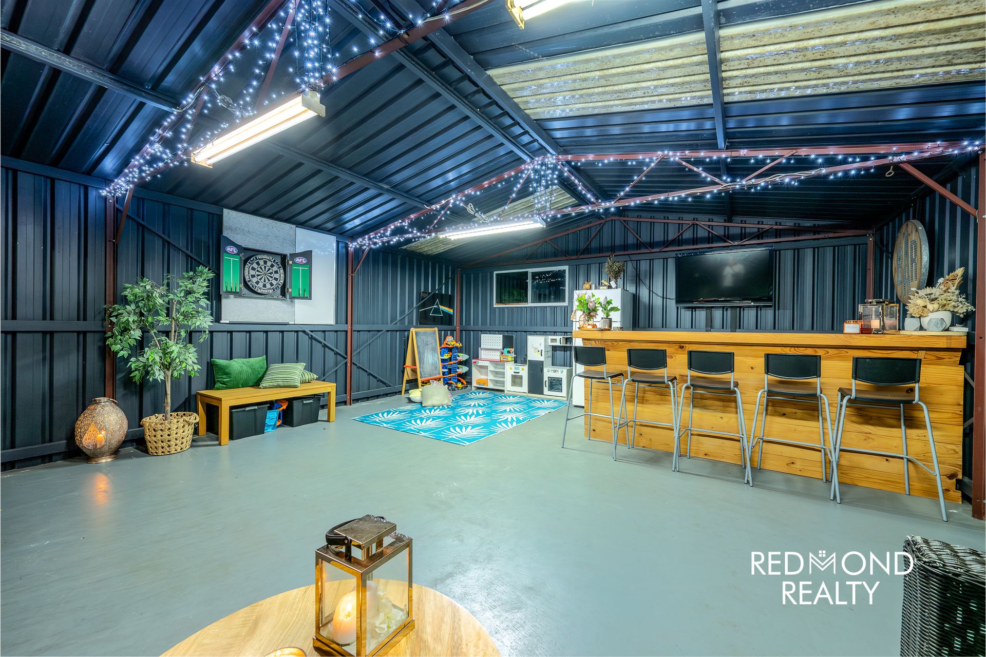 The currently single (or double tandem) carport under the main roof is easily transformed into a secure garage if you so choose, and there is also the option to drive straight through to the massive workshop which is currently functioning perfectly as a large games room or entertaining space that the whole family enjoys…