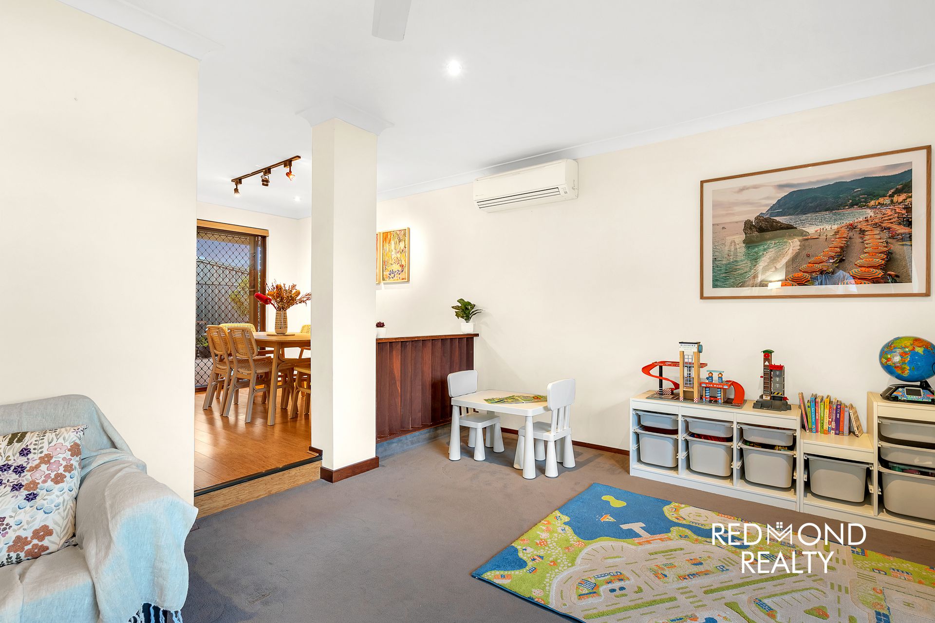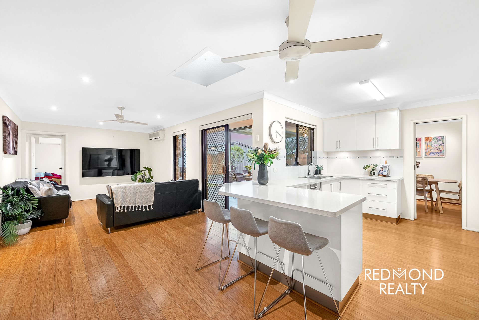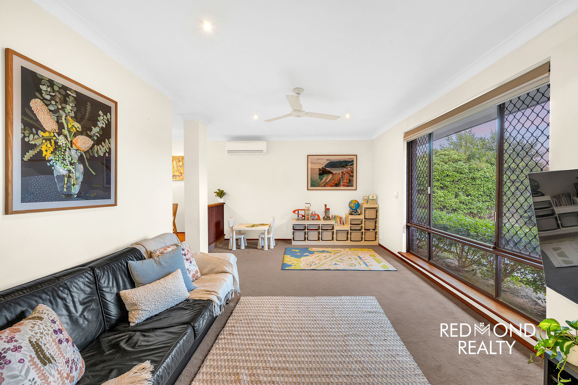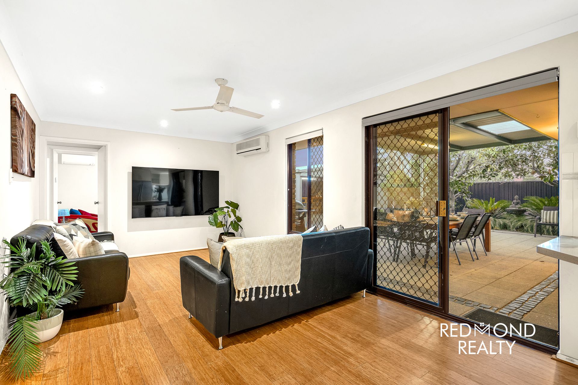 • The family room and front lounge both have split-system aircons and ceiling fans