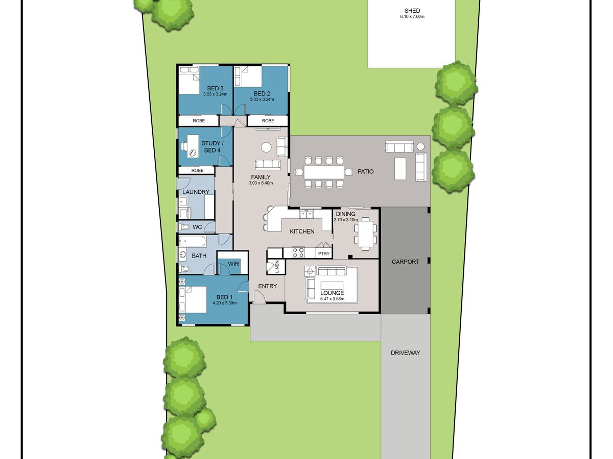 • There is a bore to water the lawns, the garden beds are mains reticulated