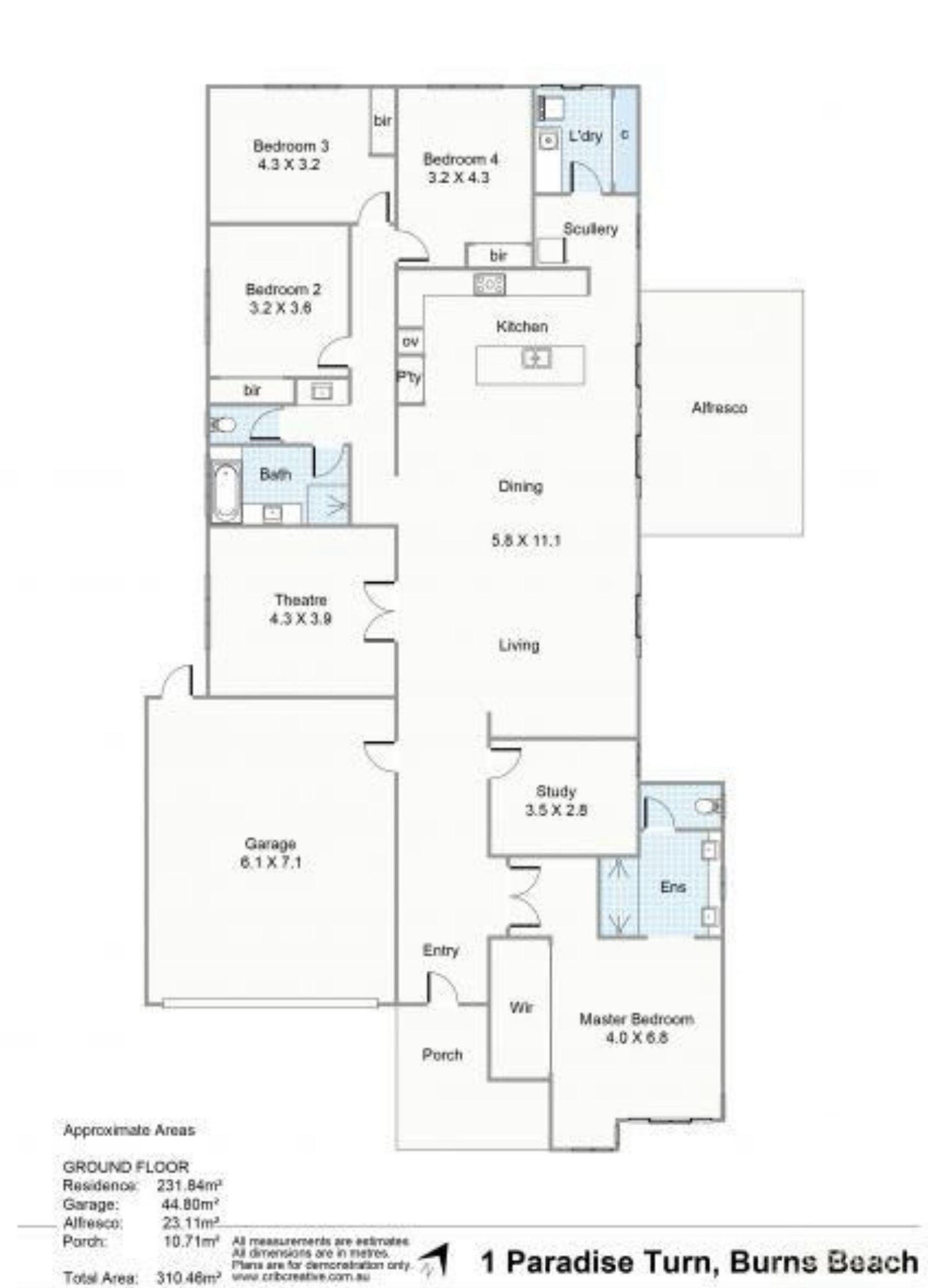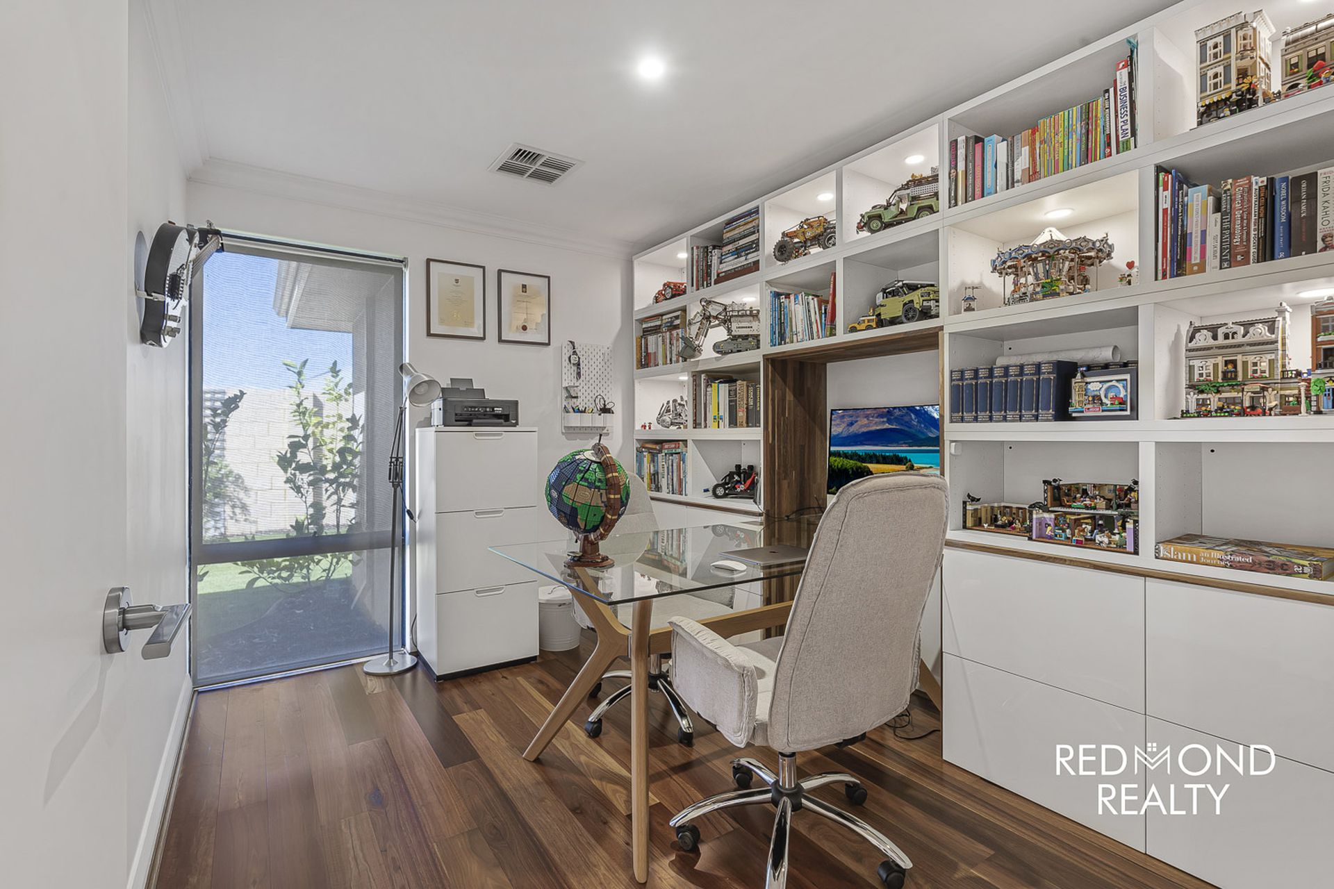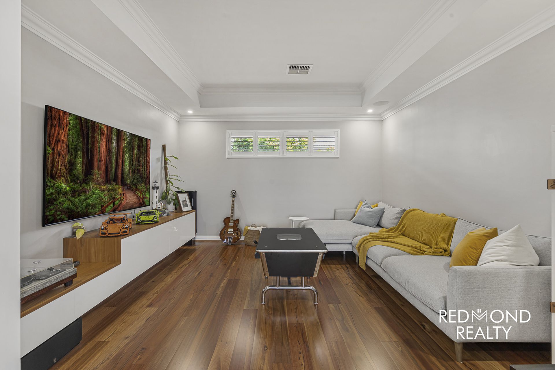- Brilliant theatre room with Spotted Gum floors, high coffered ceiling