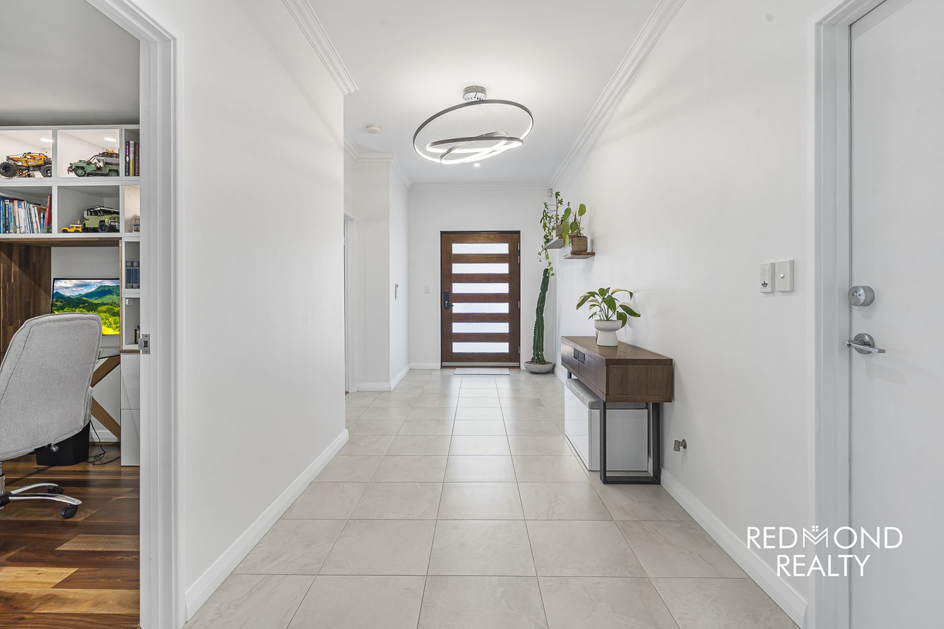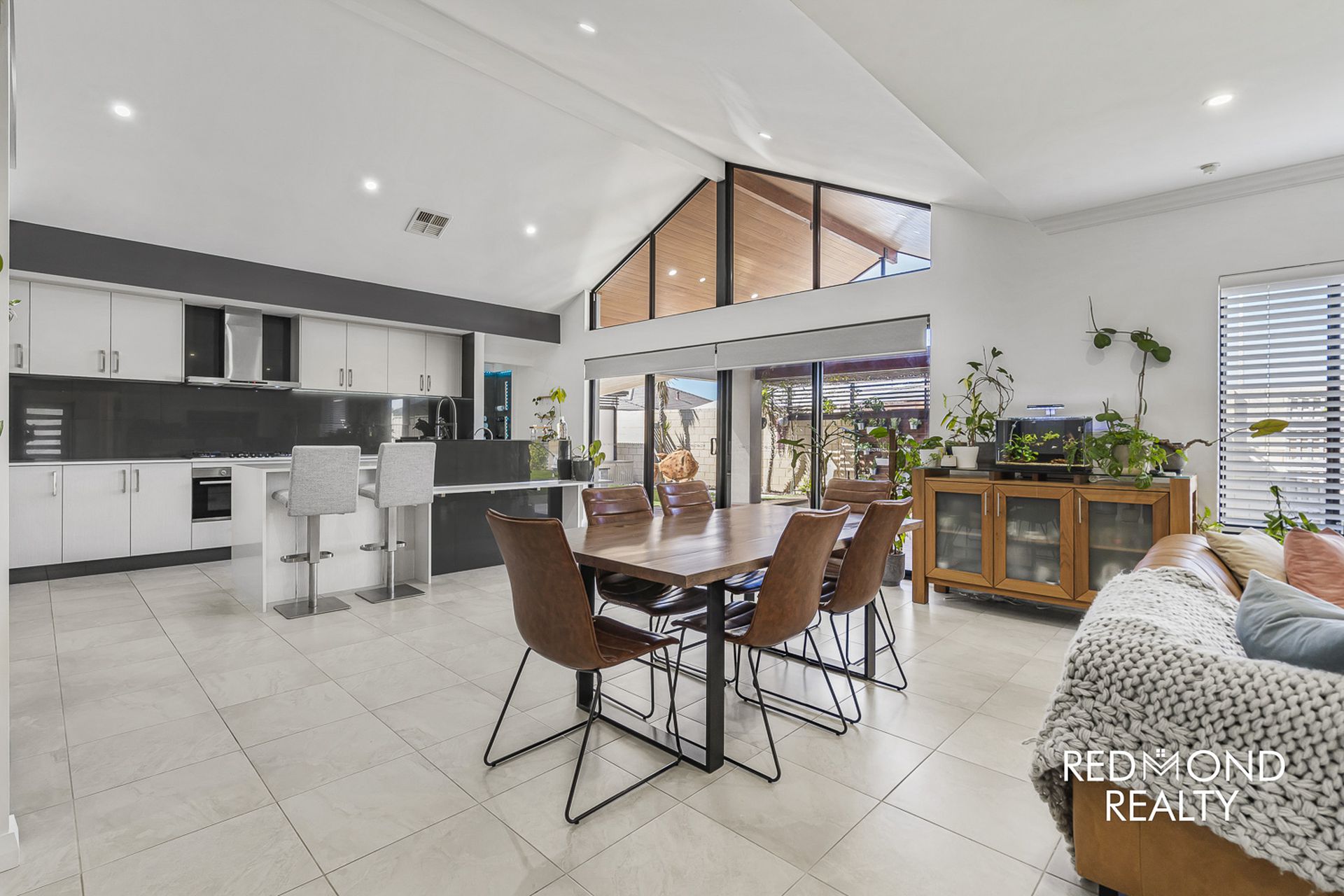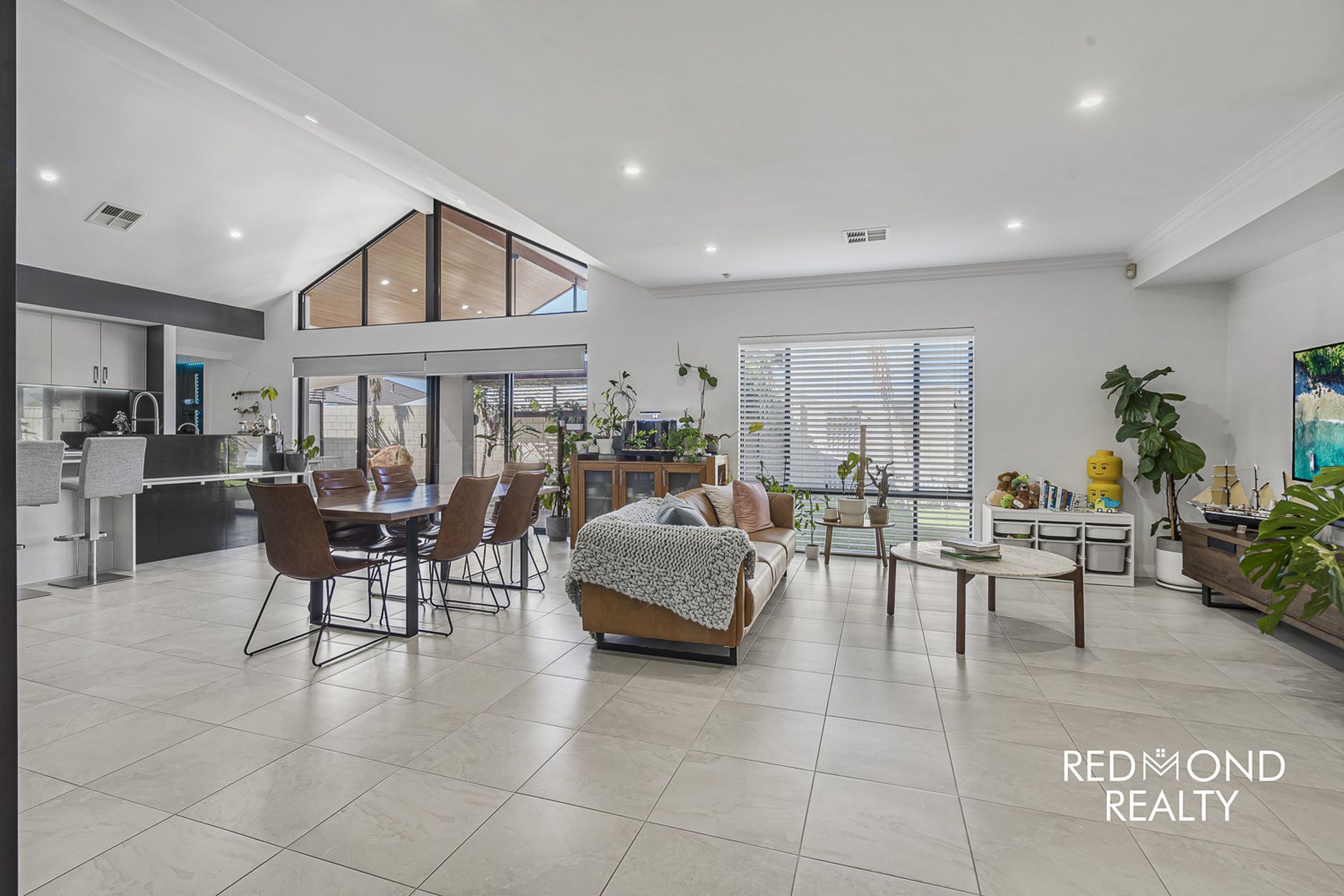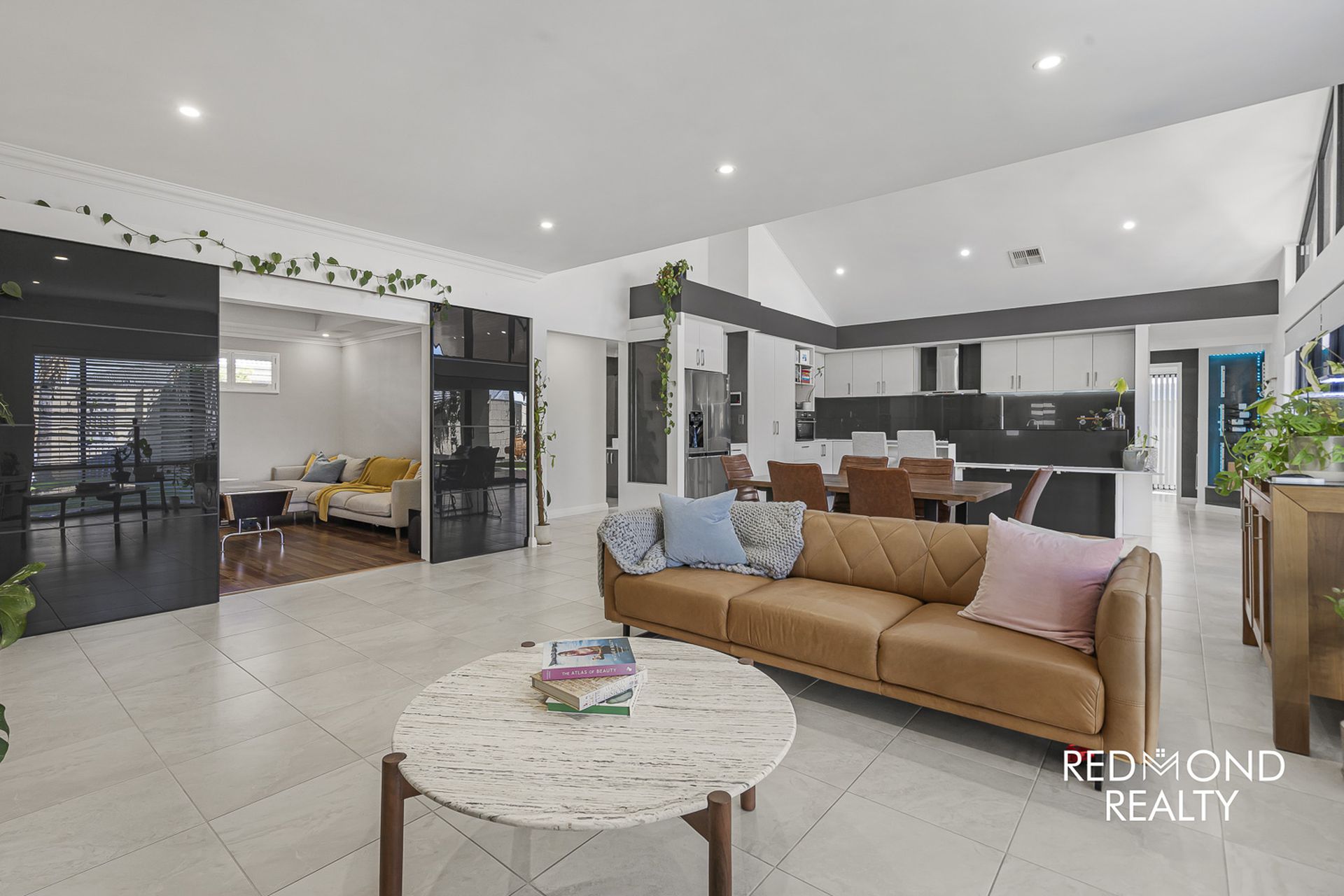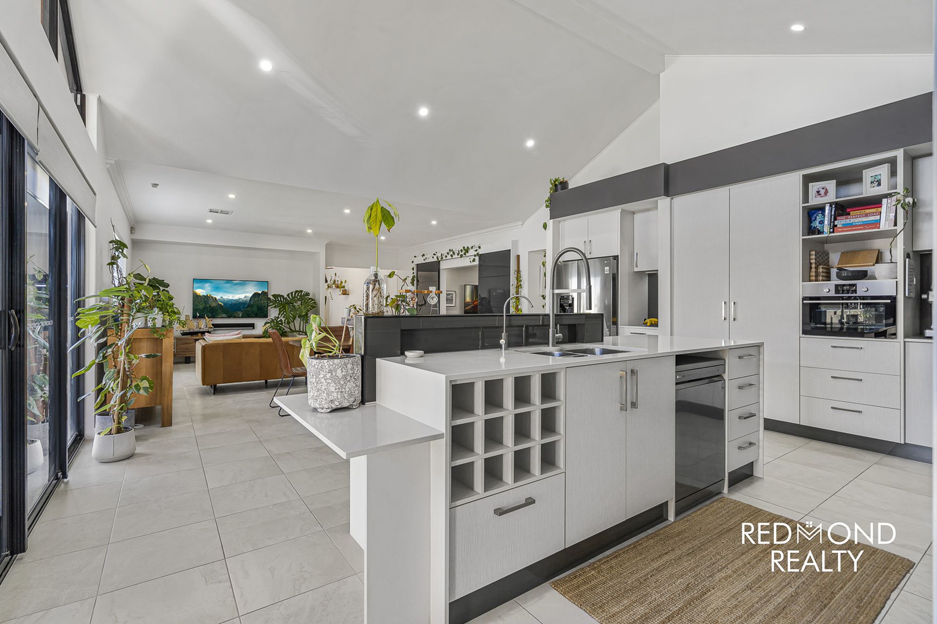 Take just one step inside and you will be totally captivated with this exquisite, high-class family home! Walk amongst the beautiful, landscaped front gardens to the decked portico which takes you through a new front entrance door revealing a wide, sun-lit Foyer leading to a centrally positioned, huge open plan family and kitchen area with soaring gabled ceilings to capture the natural sunlight continually streaming through.