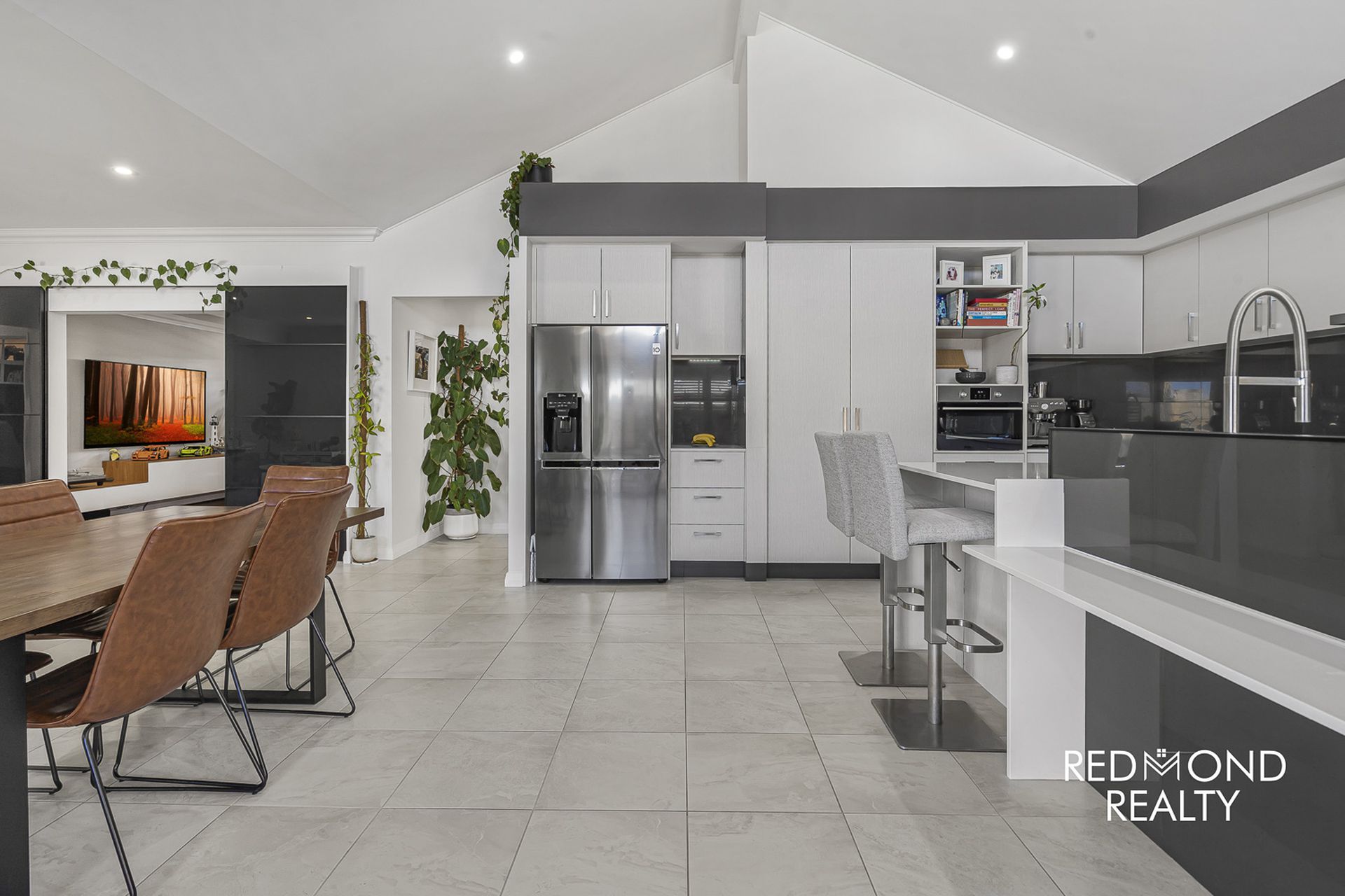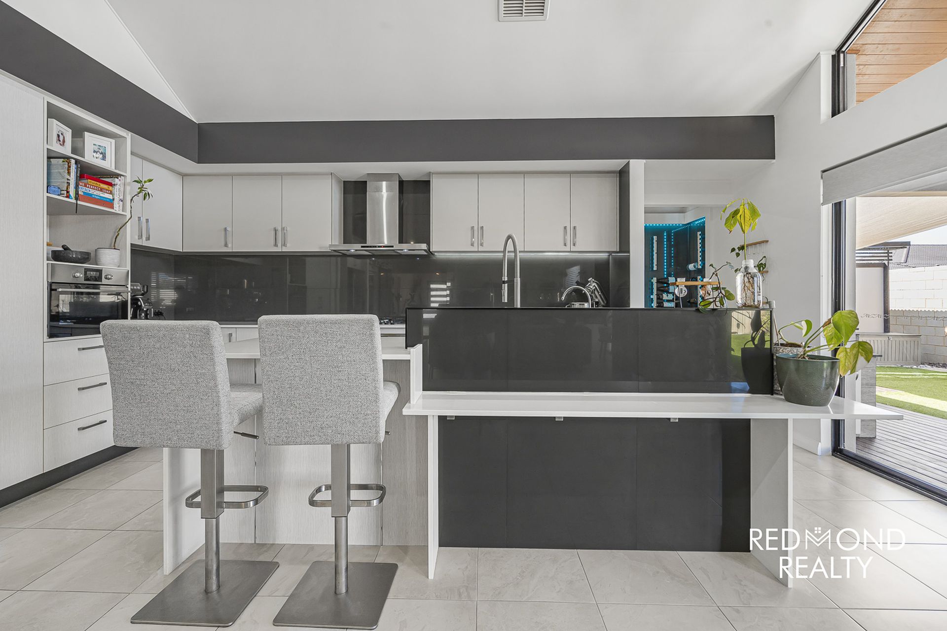 The luxurious kitchen sits at the ‘heart’ of this supreme-quality home; gleaming engineered stone benchtops, an abundance of soft closing ‘cool-white’ cabinetry, glossy tiled splashback, in-built microwave, water filter, near new 90cm under-bench oven & six burner gas cooktop, new dishwasher, rangehood, breakfast bar, large fridge recess plus additional fridge space to the rear of the kitchen.