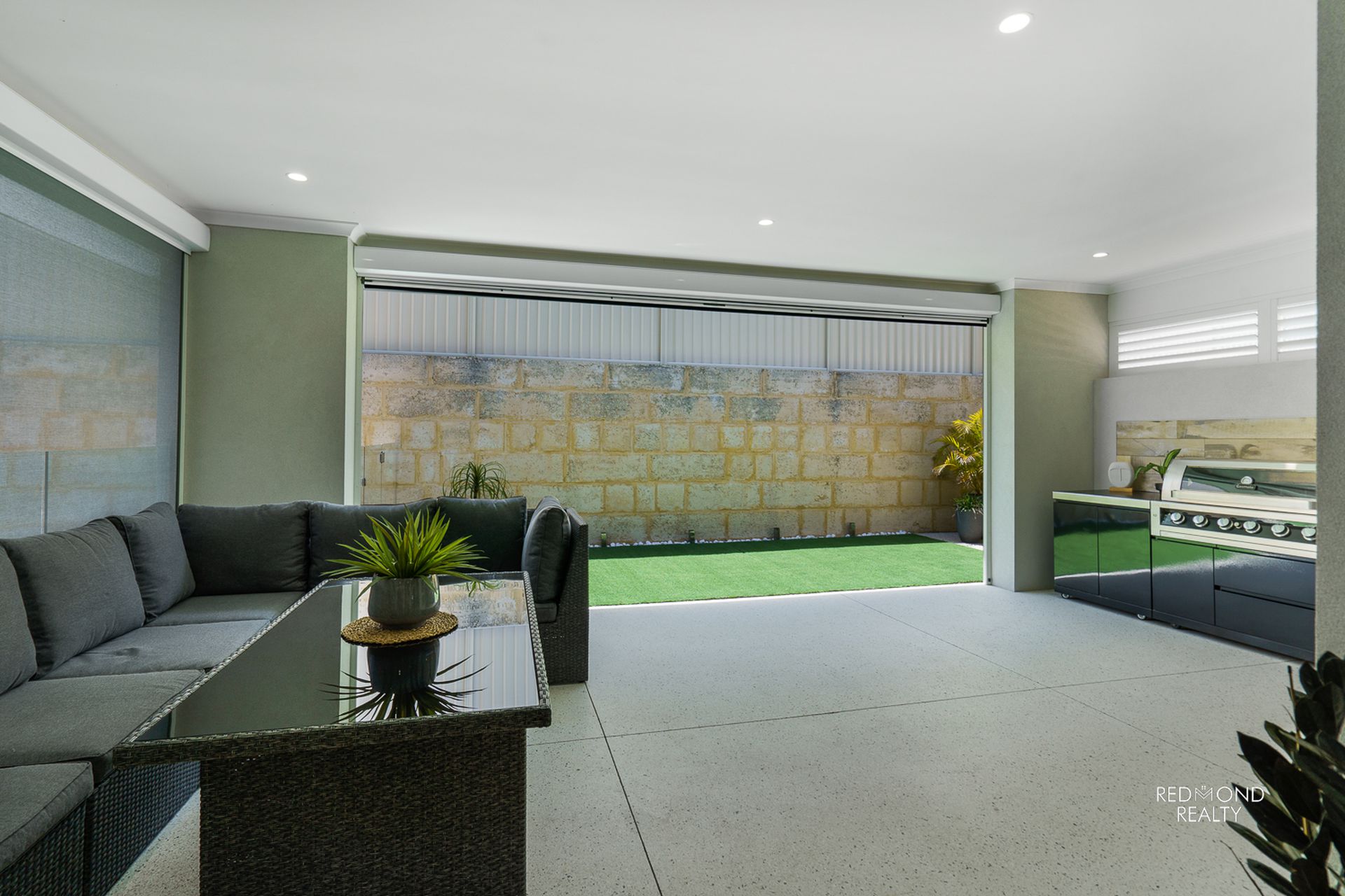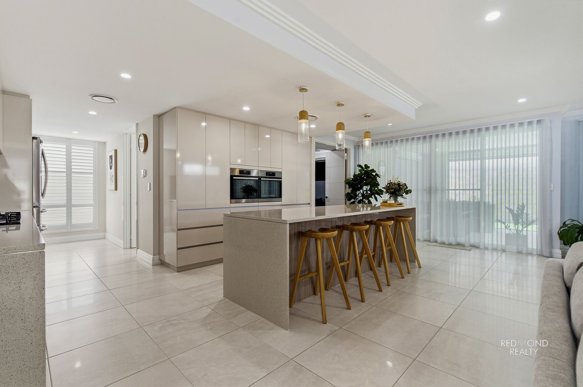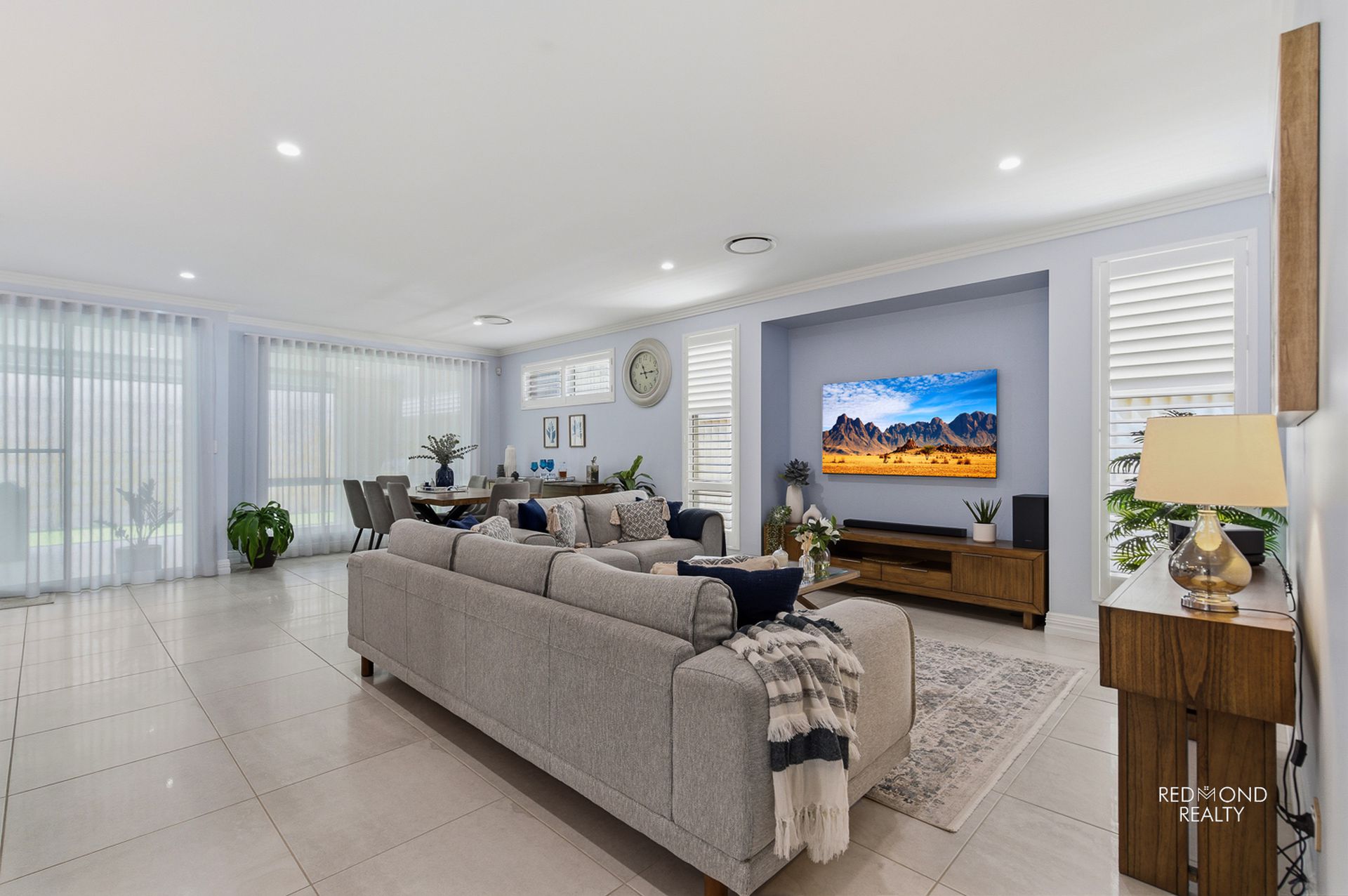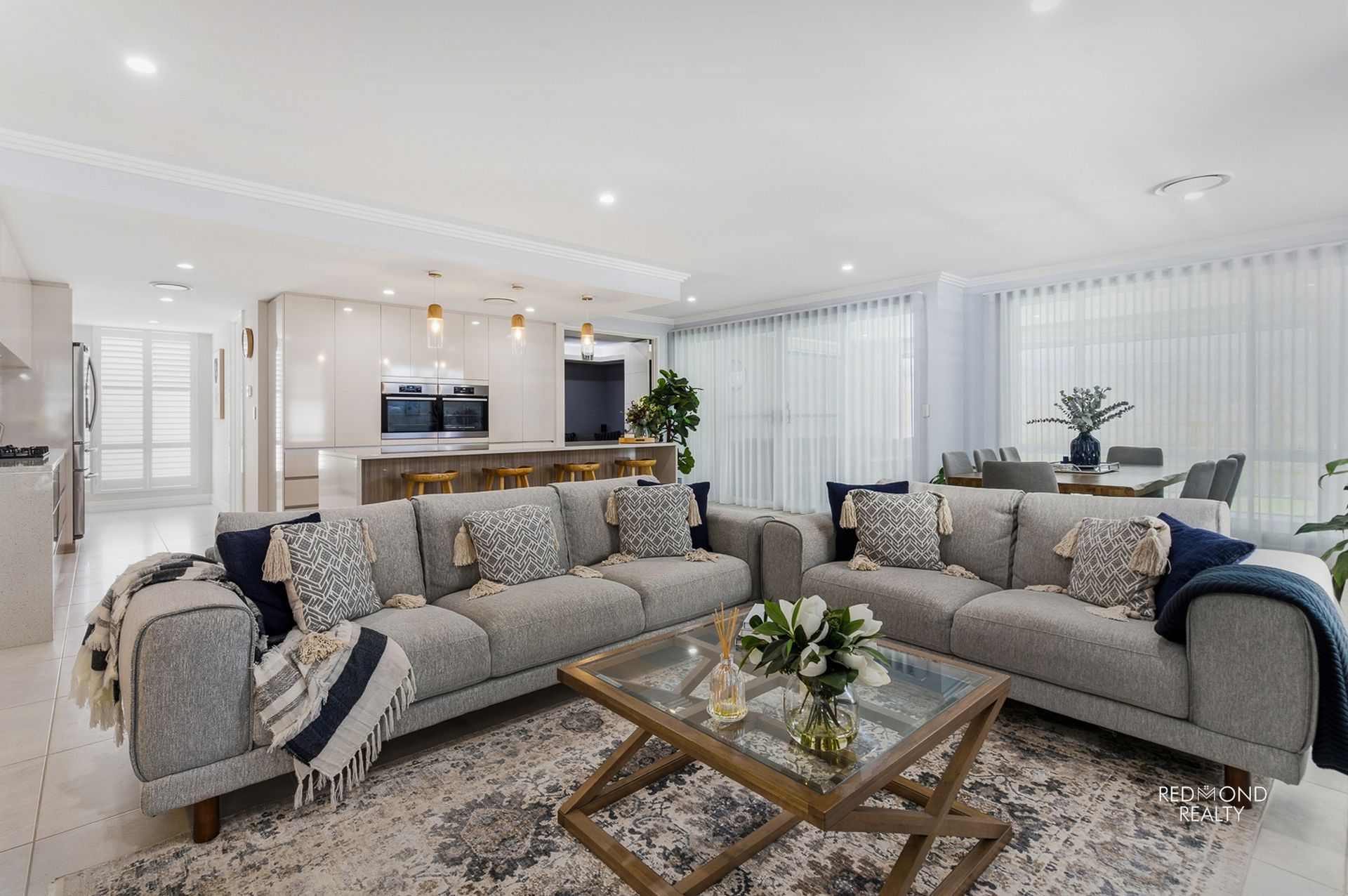 - Grand central living area dappled in natural sunlight, wide sliding doors lead into the outdoor Alfresco area comfortably blending indoor & outdoor living, plus two café blinds for year-round comfort