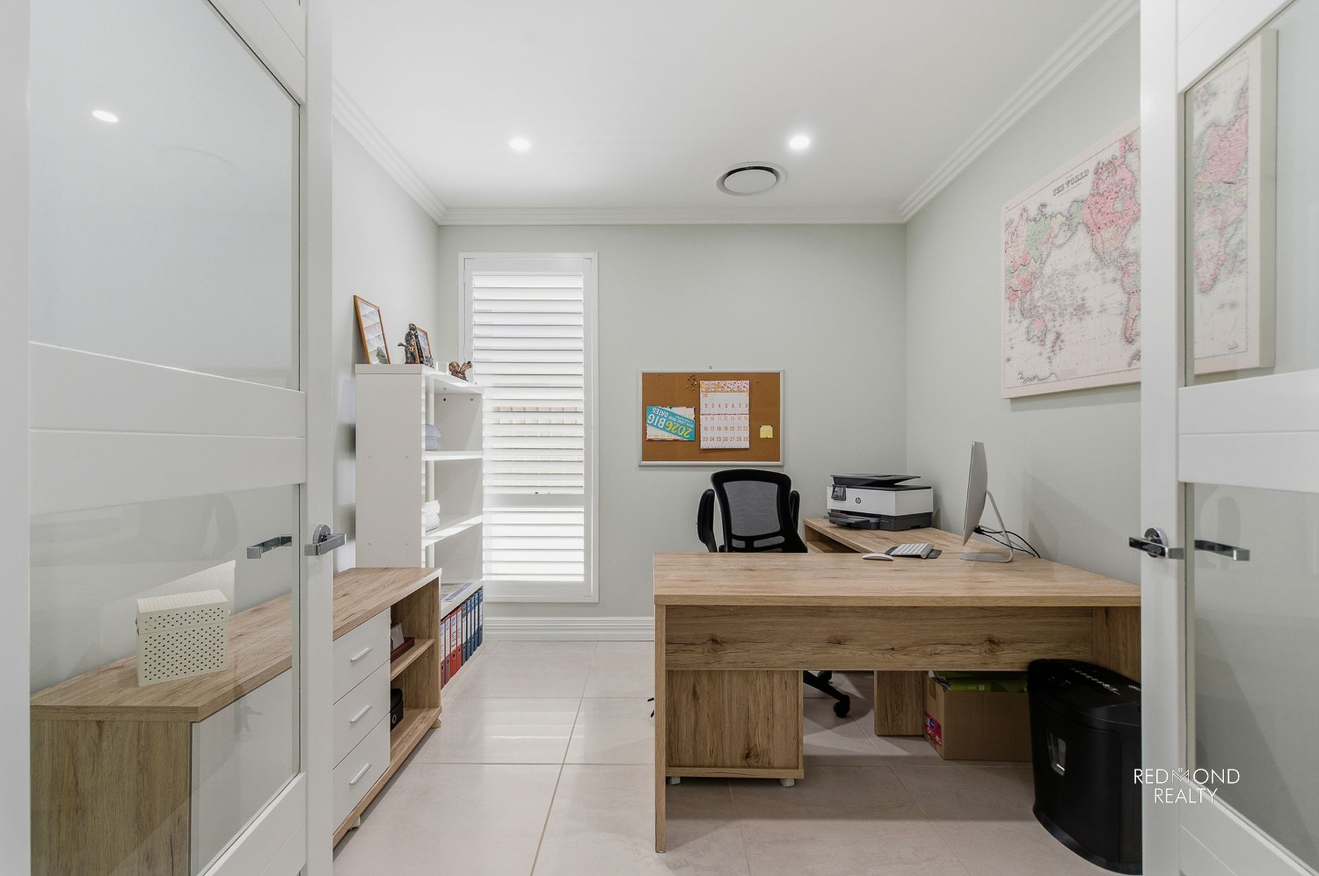 - Dedicated home office, glass & timber double doors
