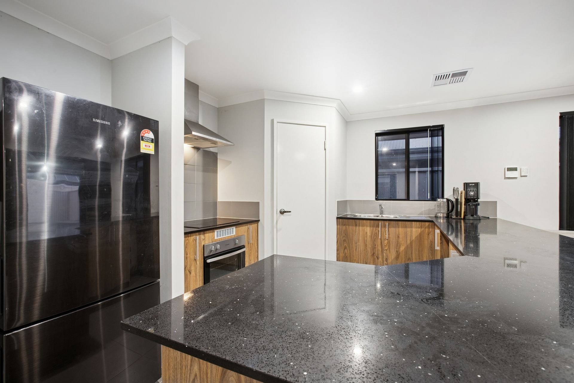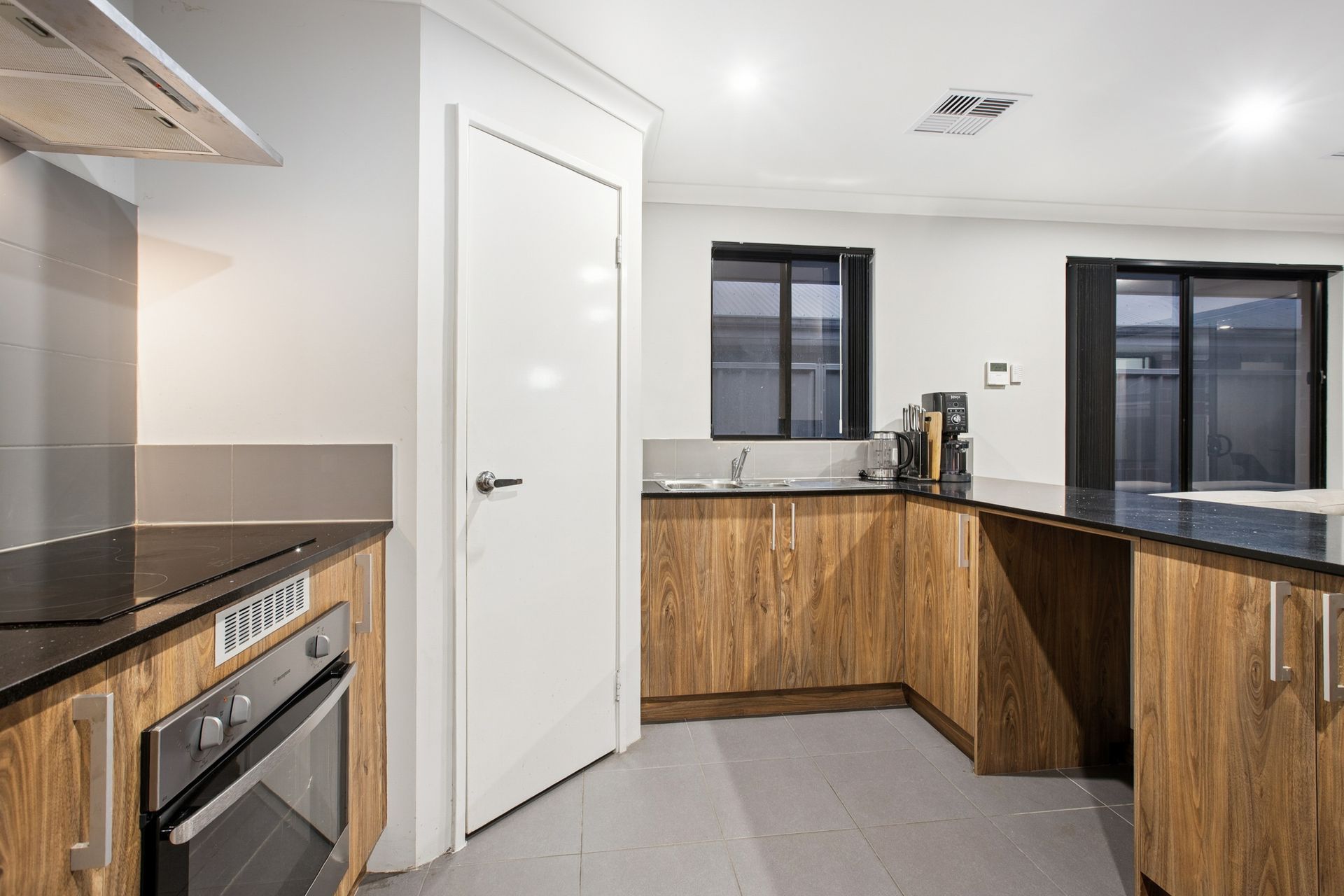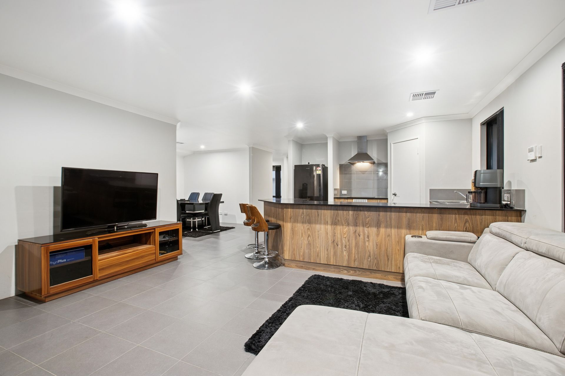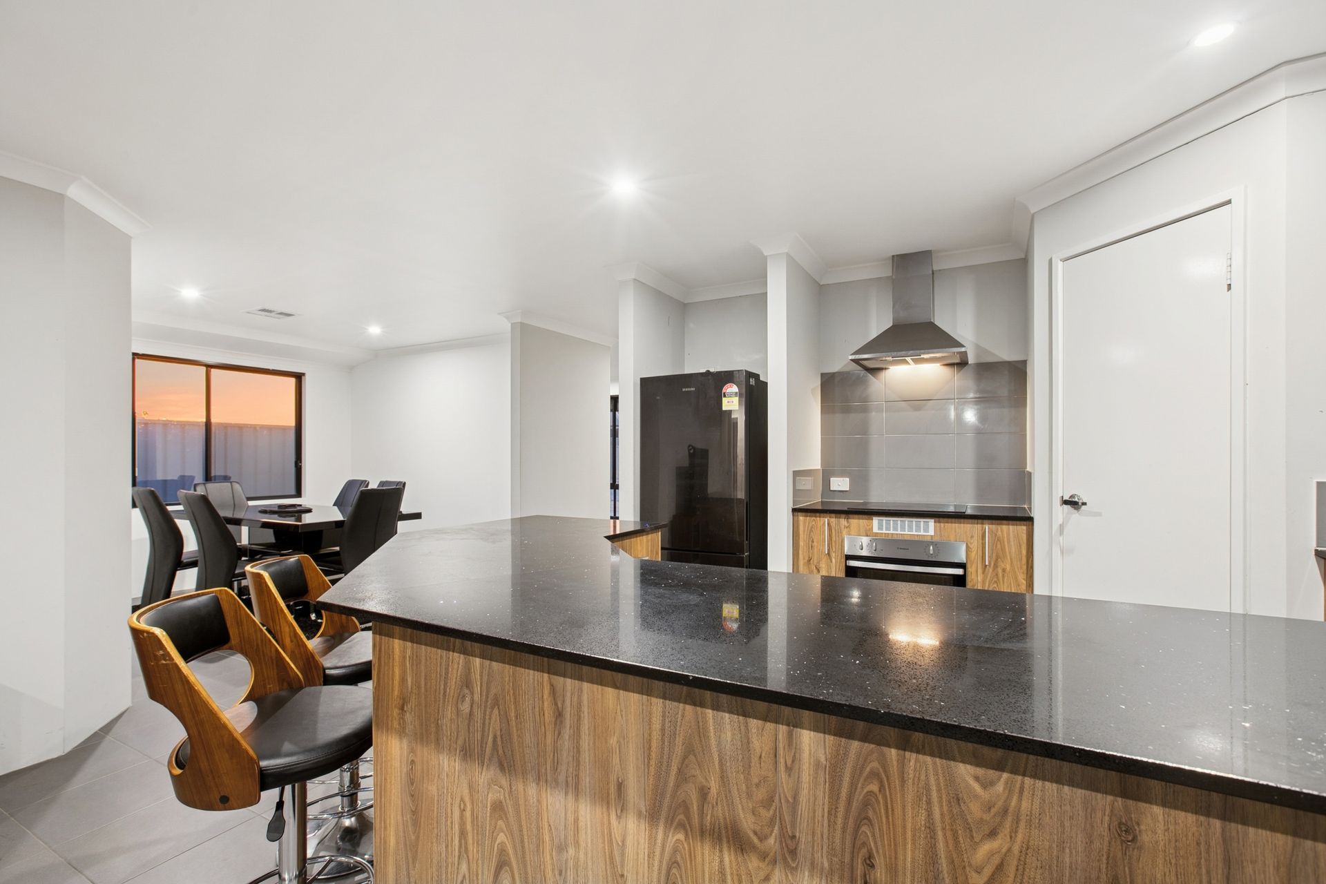 - A functional open-plan family, dining and kitchen area with large quality stone bench tops, tile splashback, large breakfast bar for casual meals, stainless-steel dual basin, induction-cooktop, westinghouse oven and dishwasher recess.