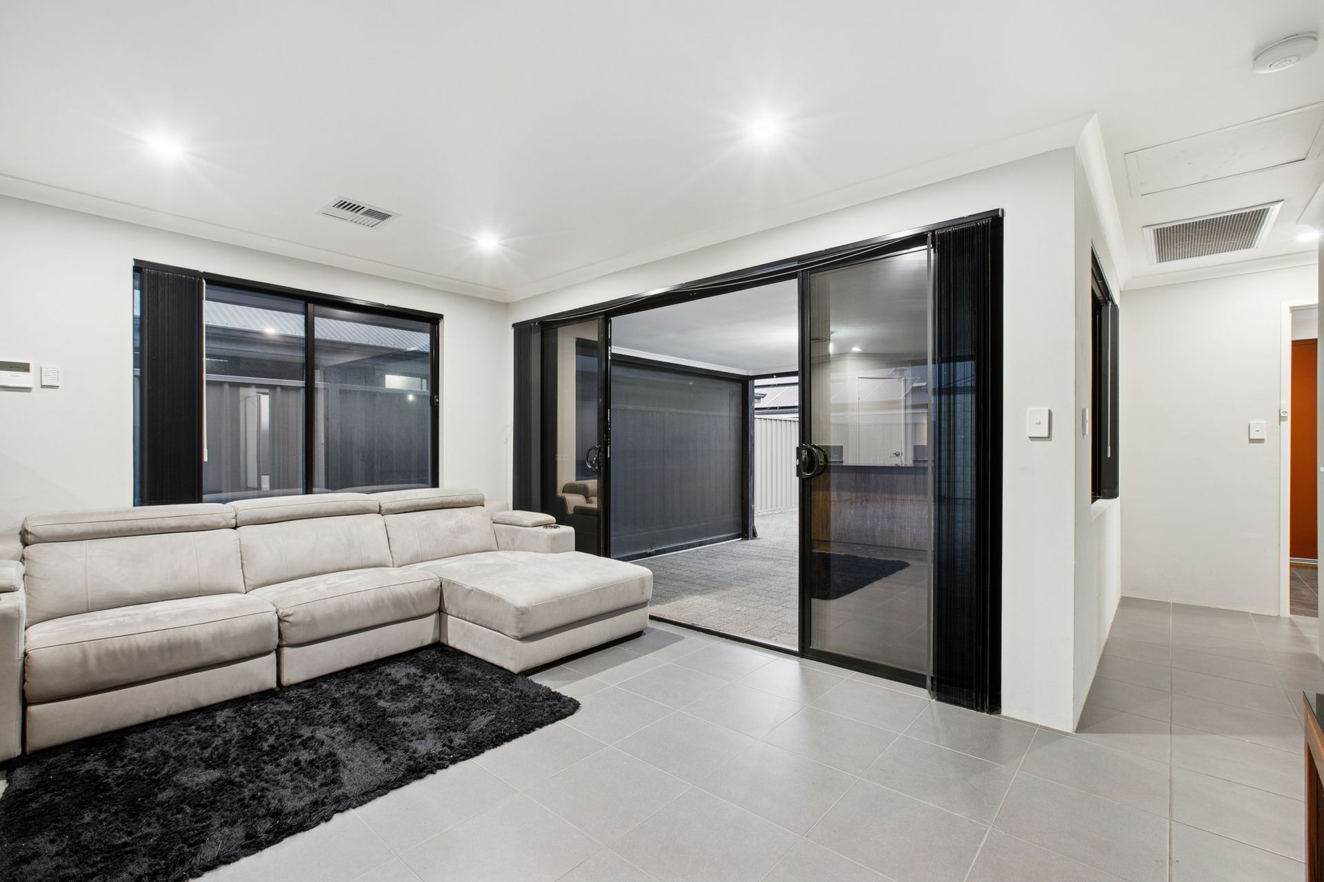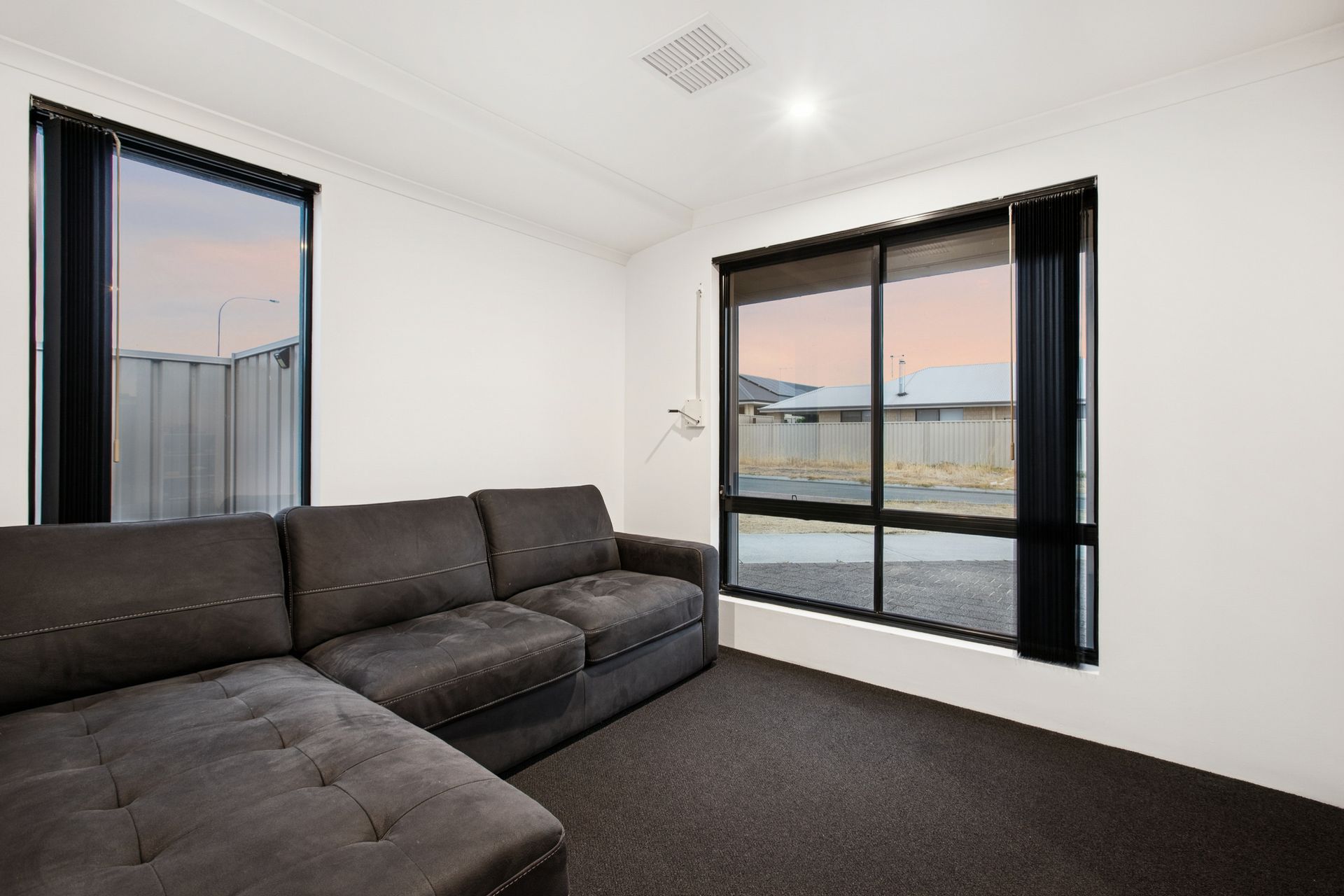 - Carpeted theatre room at the front of the home, perfect for entertaining and quiet nights in - also fitted with security shutters for optimum cinema lighting!