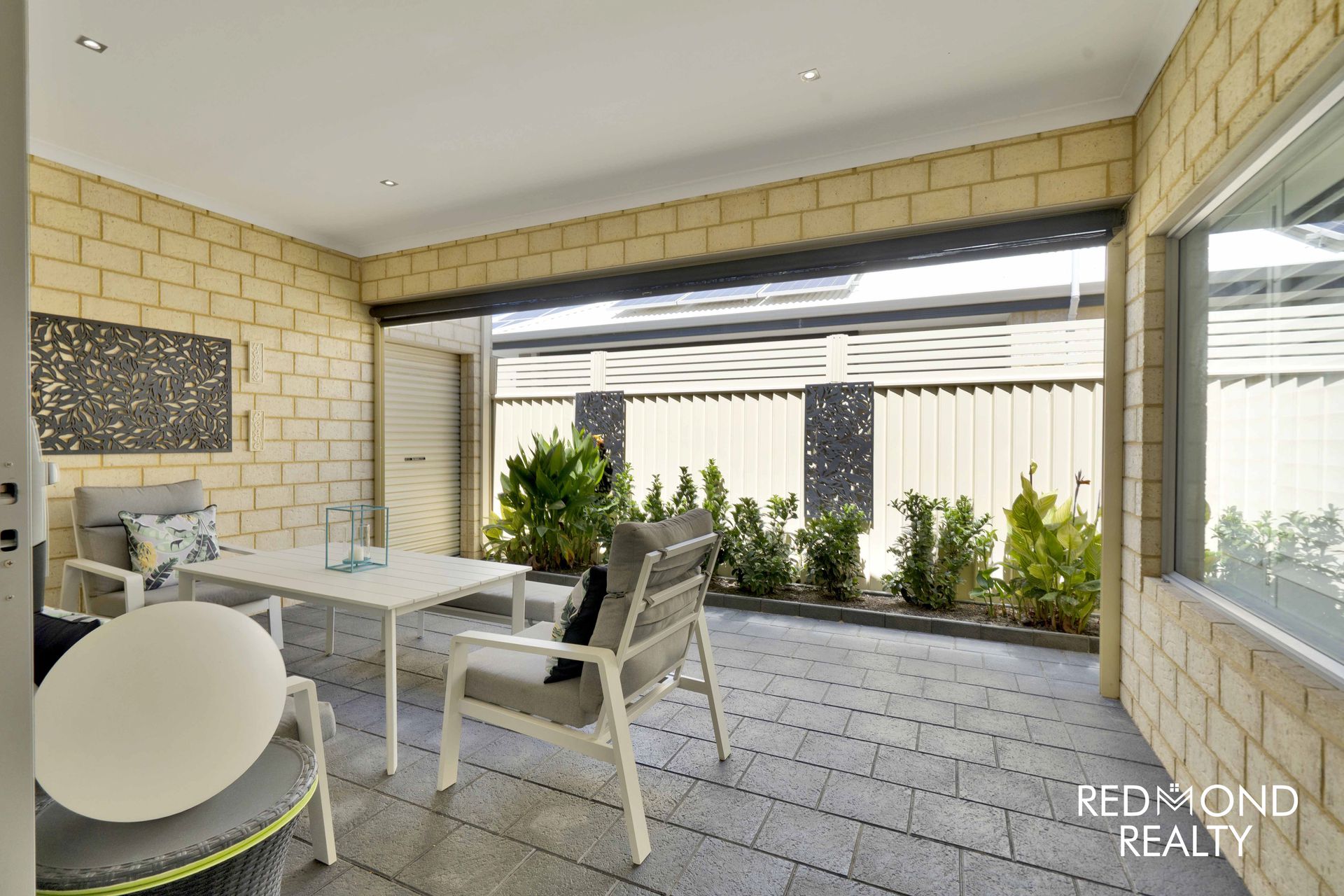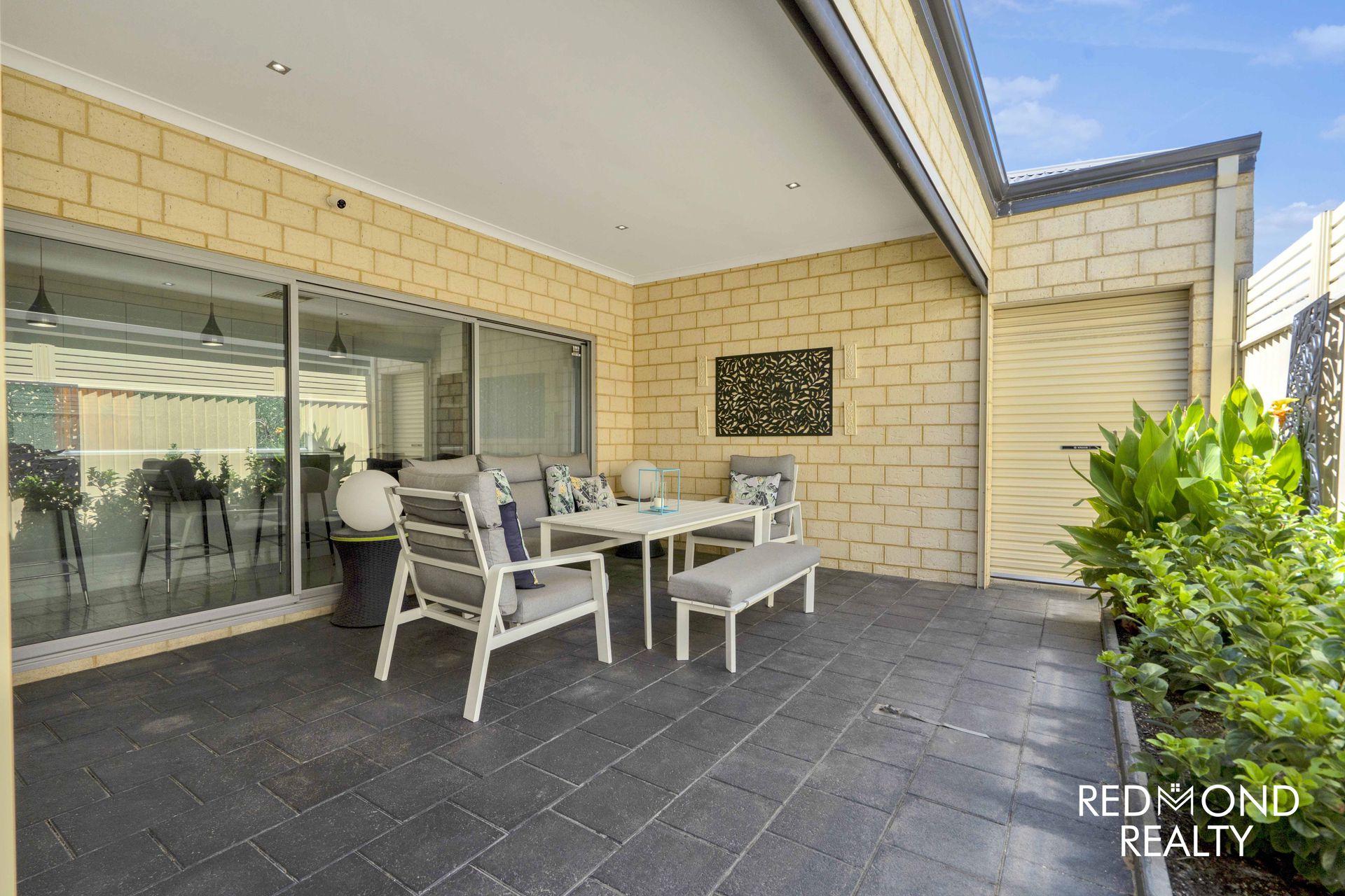 - Expansive paved outdoor under-cover Alfresco area with remote control blind, 4.4m (approx.) Commercial Grade triple stacker doors