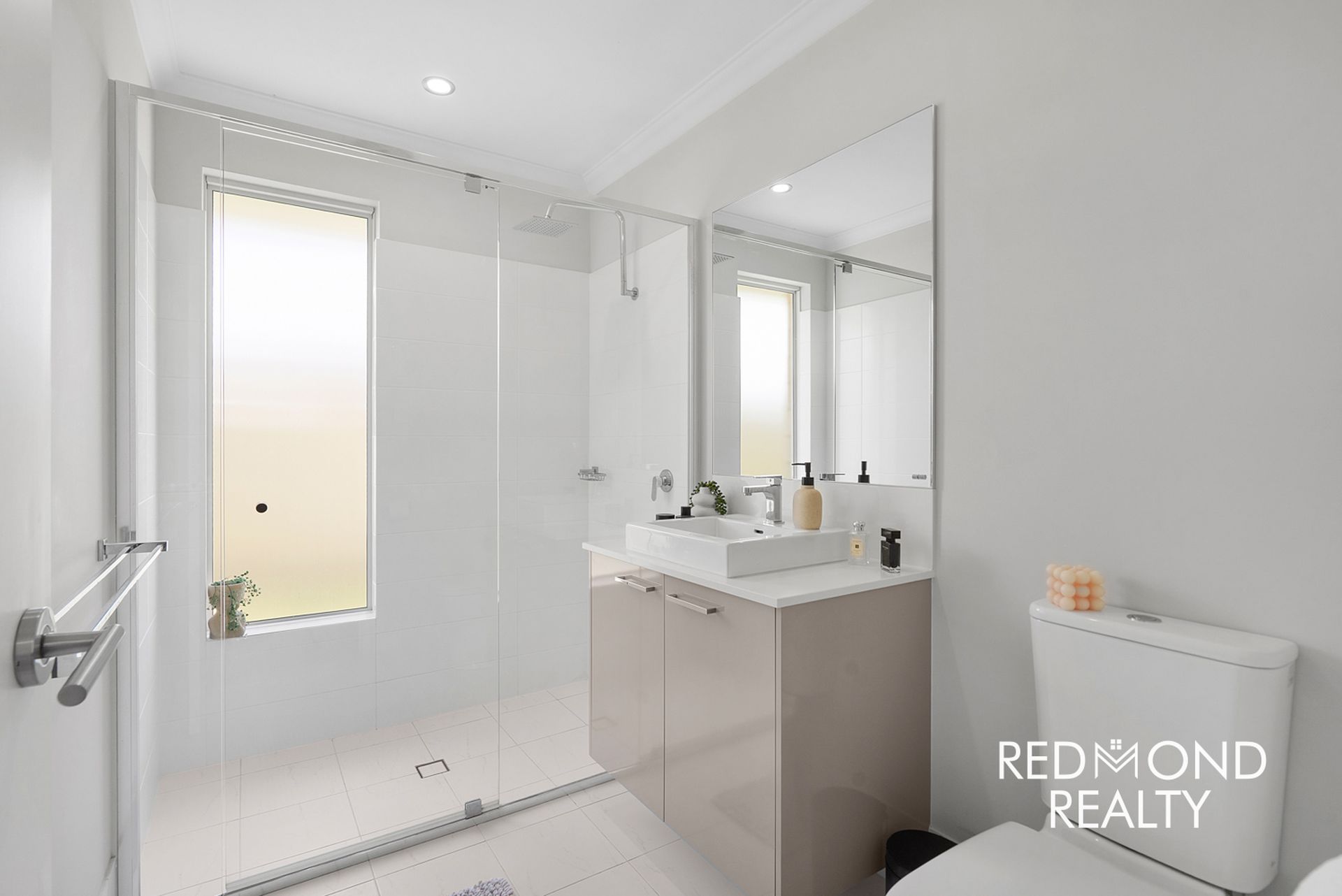 - Neat & spacious family bathroom; engineered stone benchtop, hobless shower, vanity, separate WC