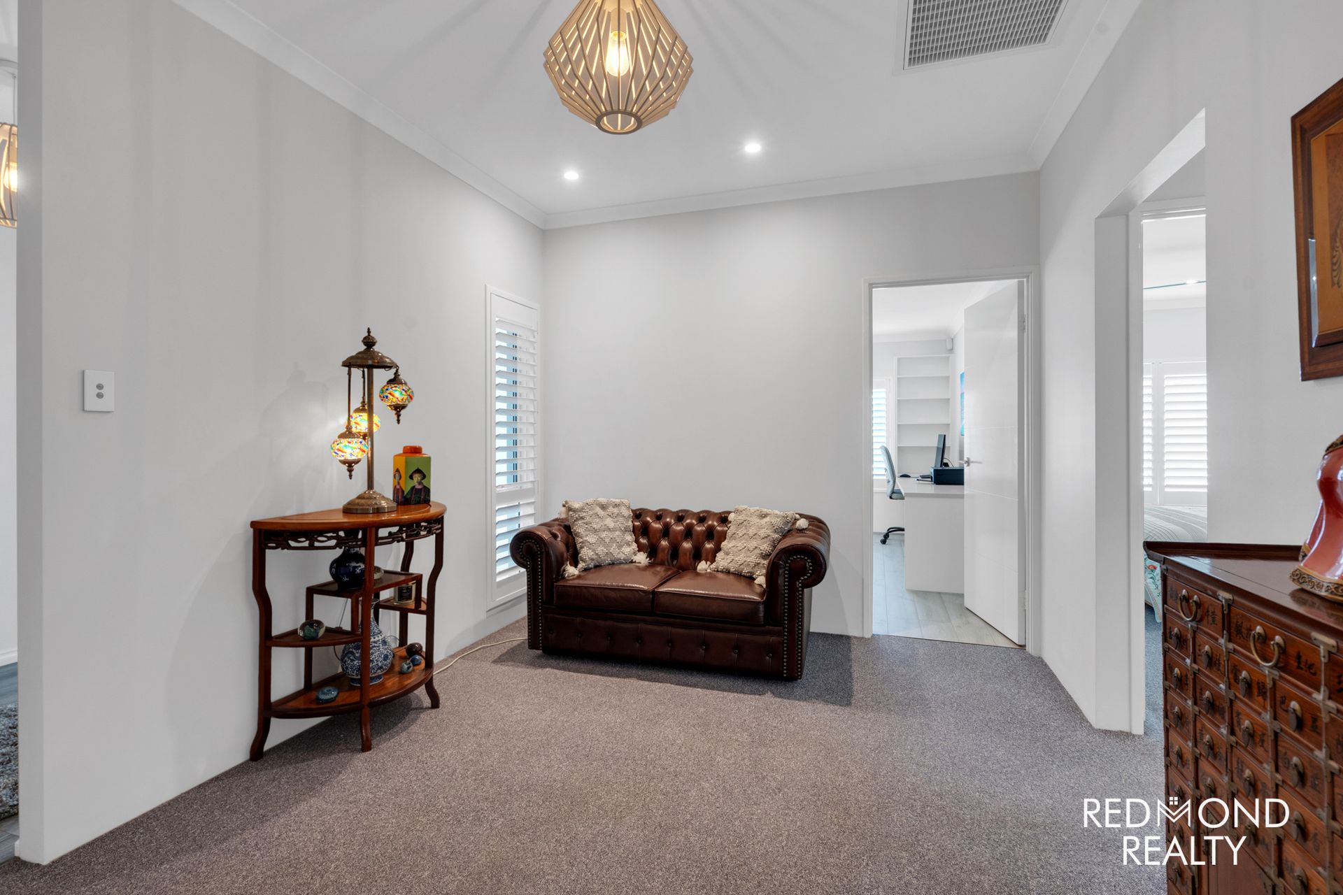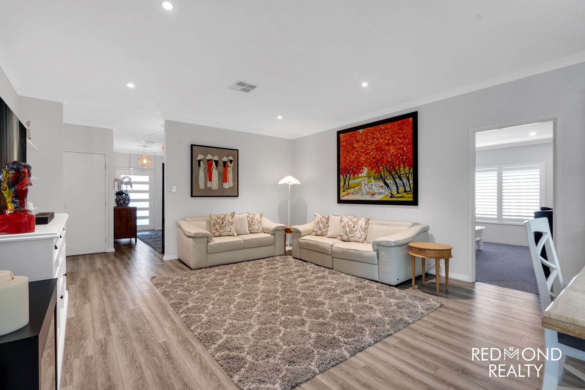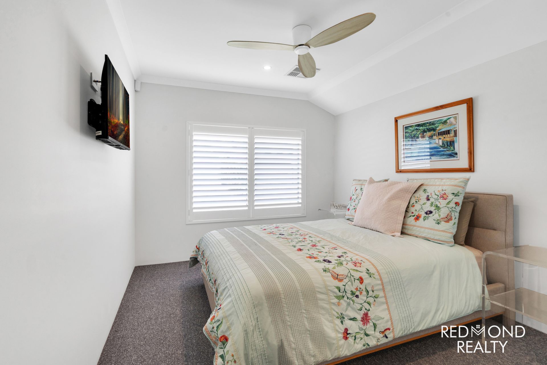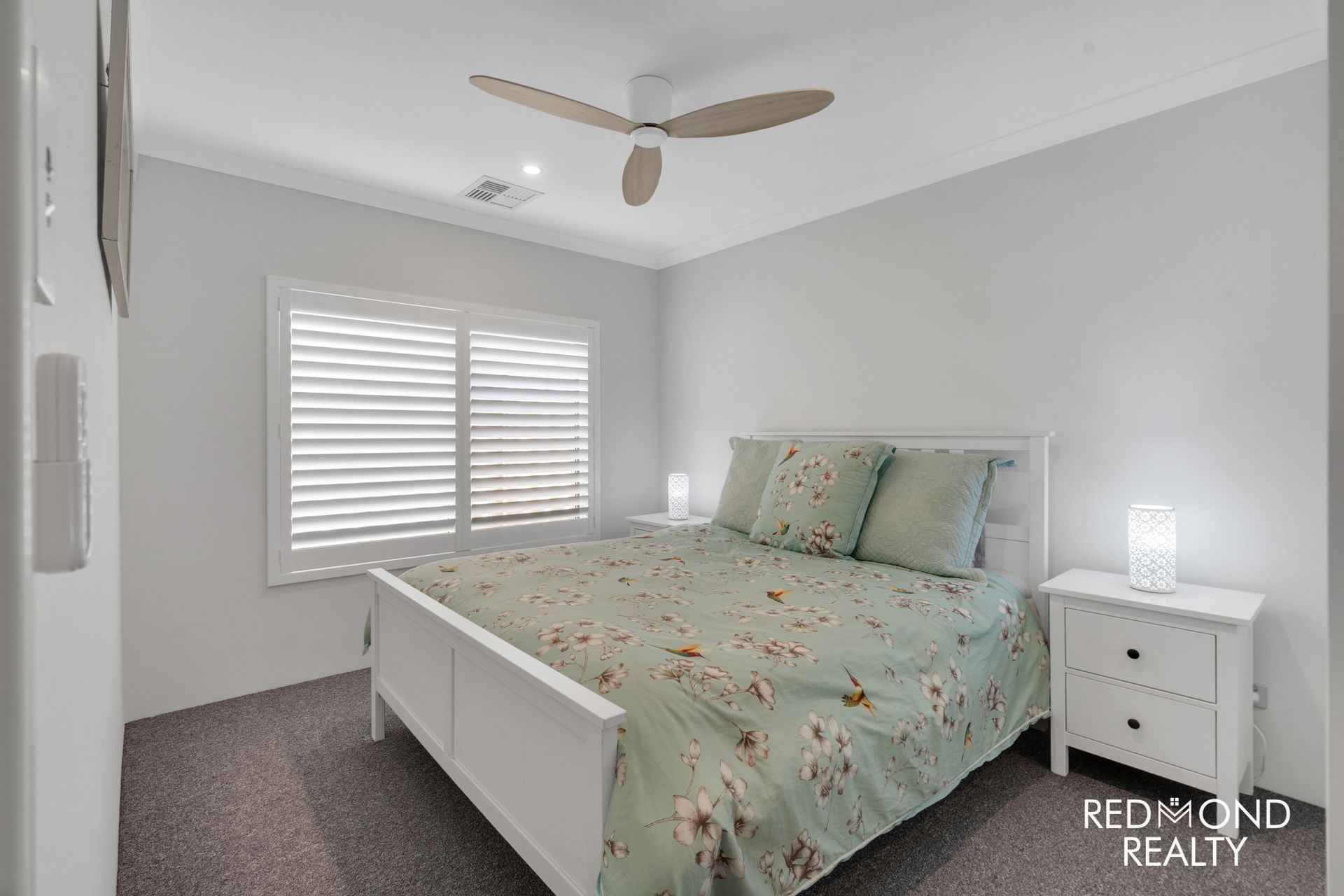 - Crisp-white Plantation Shutters throughout