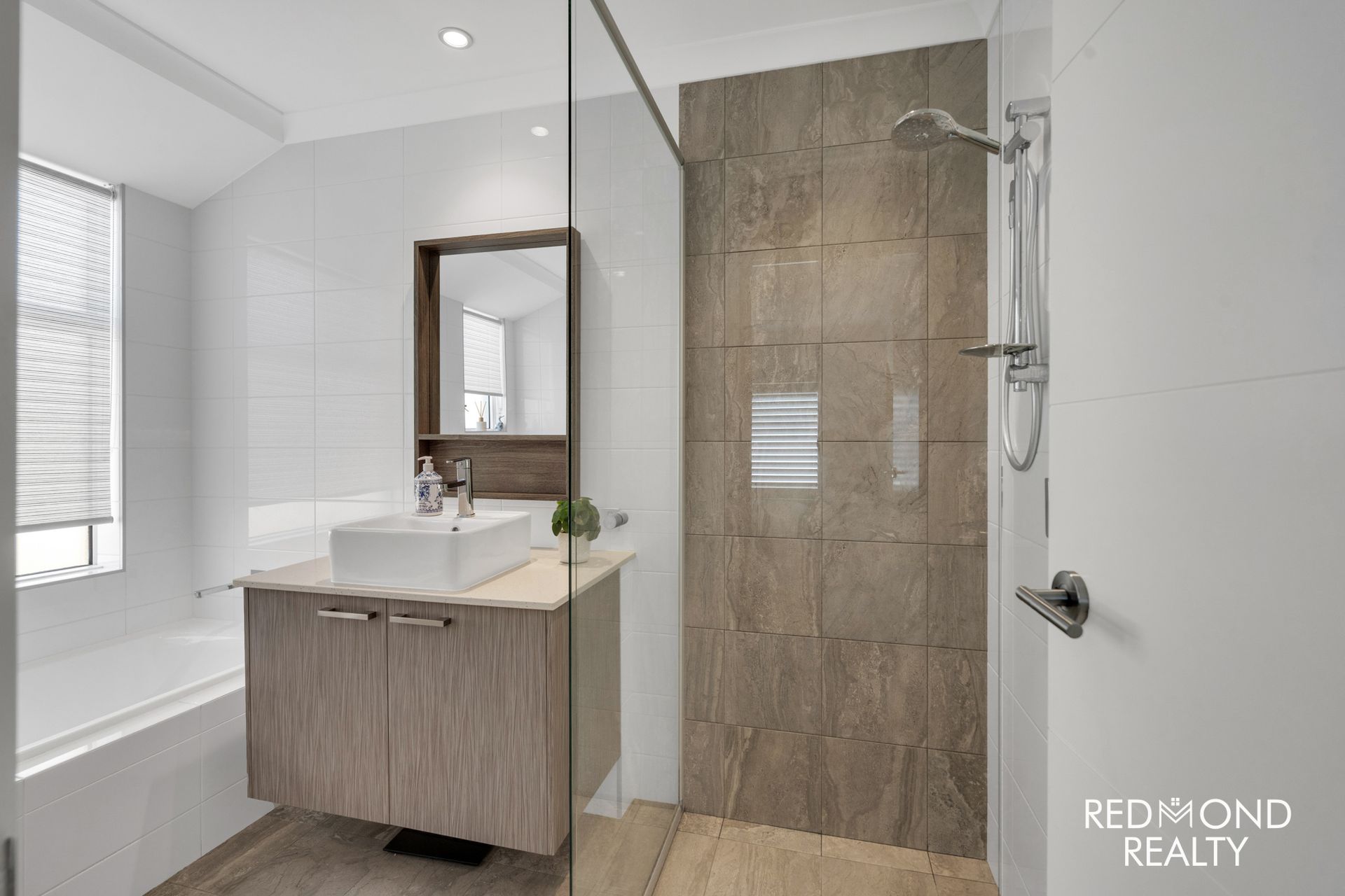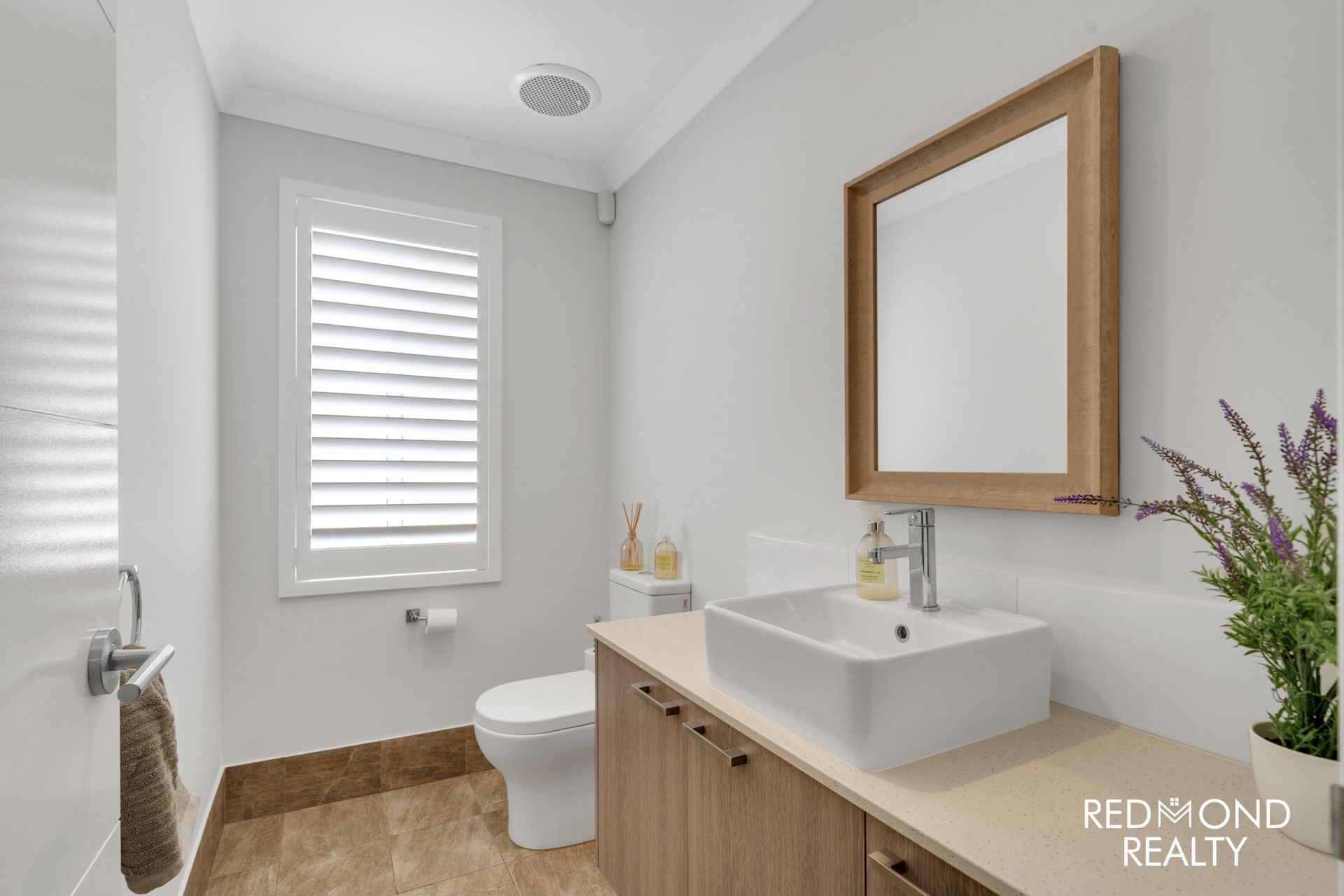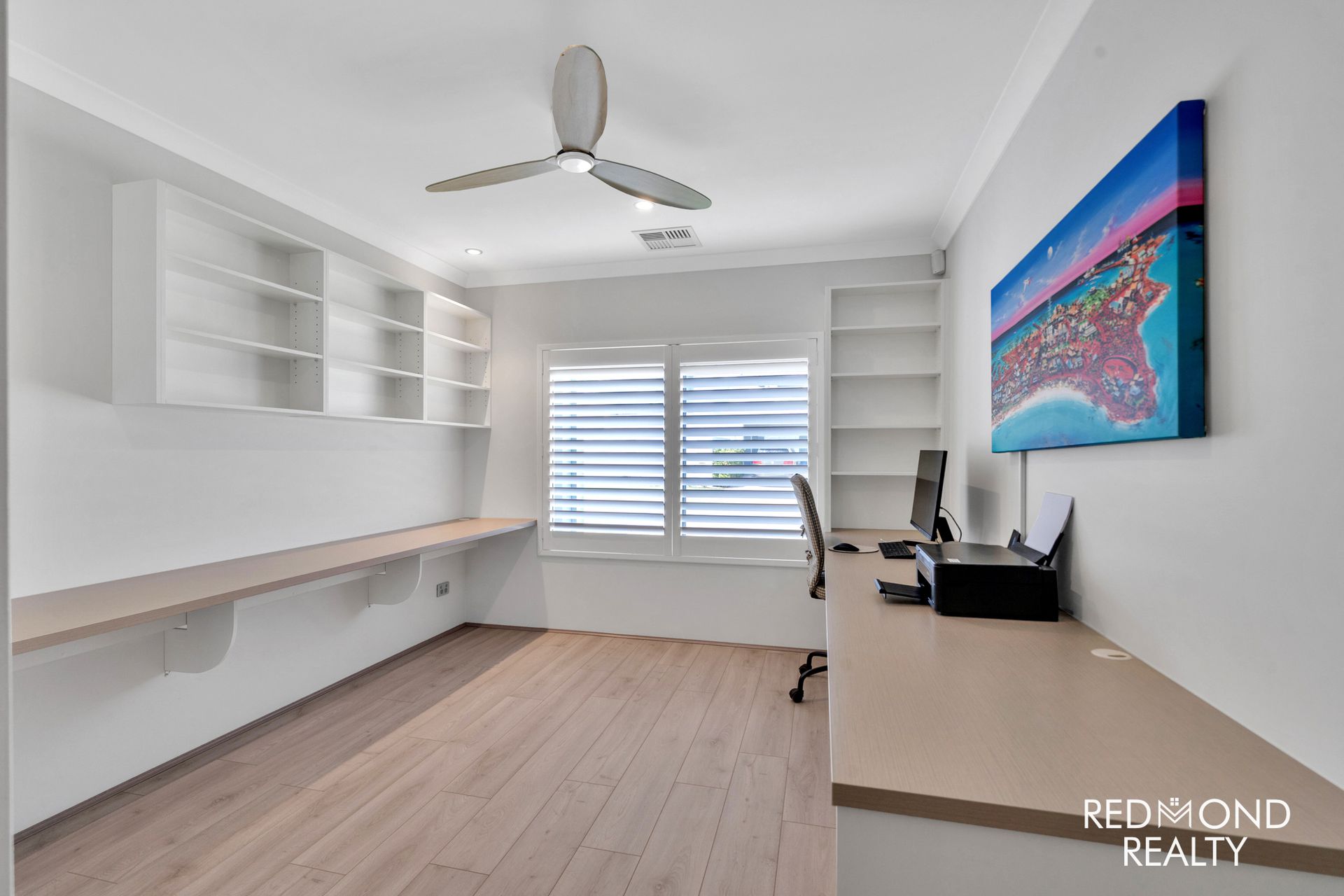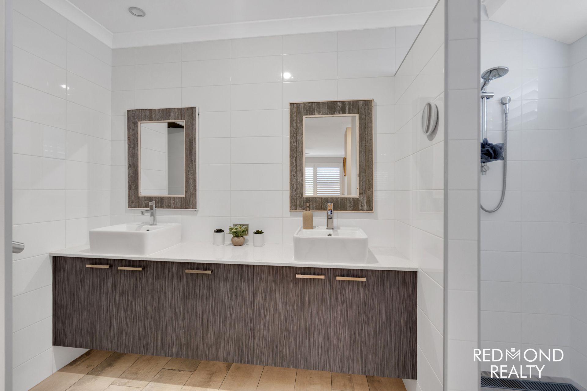- Crisp-white Plantation Shutters throughout
