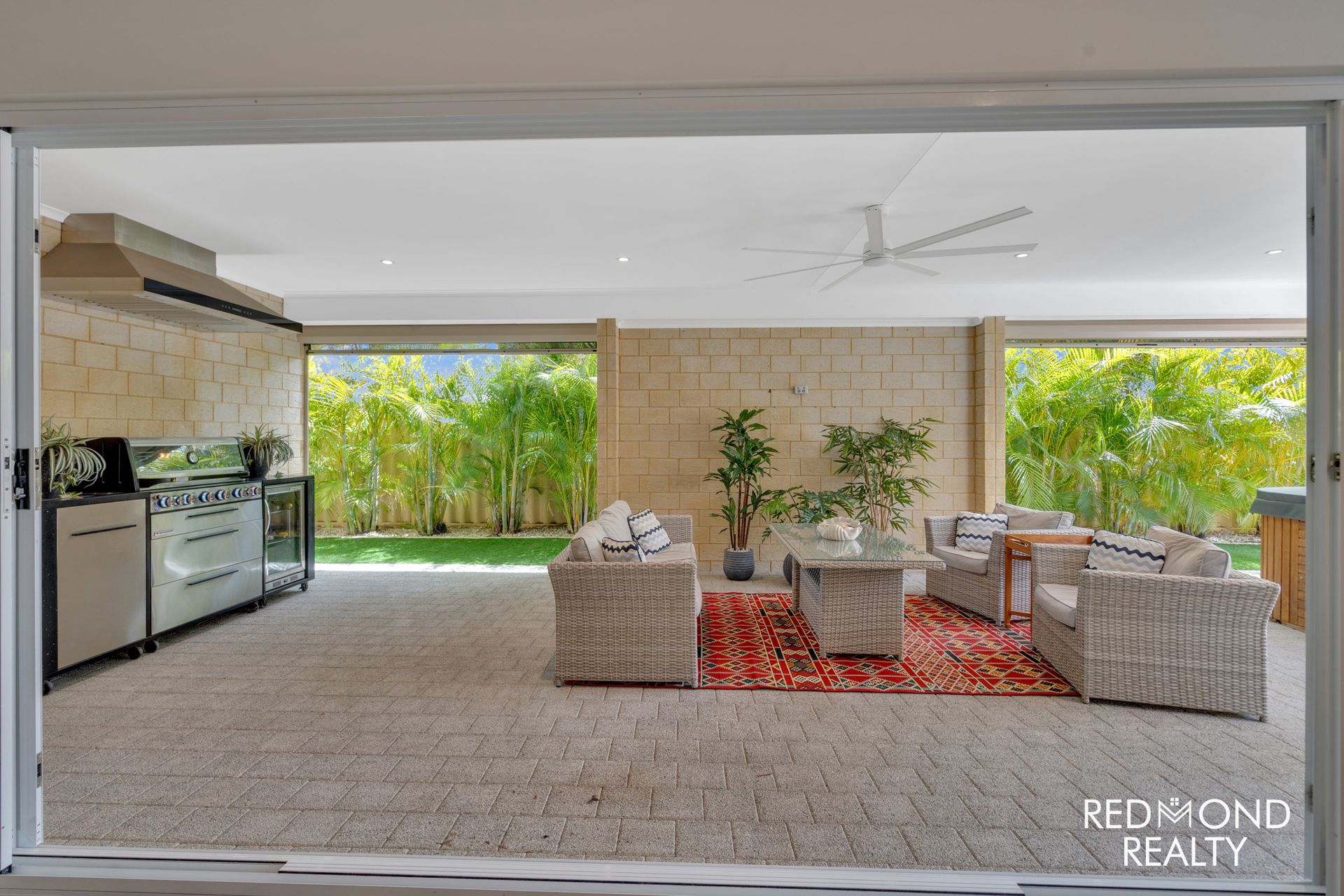 - Huge, private Alfresco with outdoor kitchen; BBQ, bar fridge & full-sized extractor fan (all included in the sale)