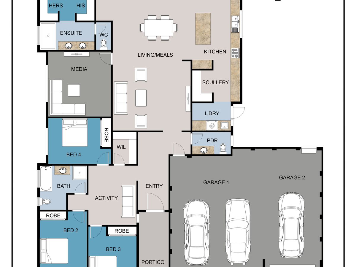- TRIPLE garage with roller door access to the rear