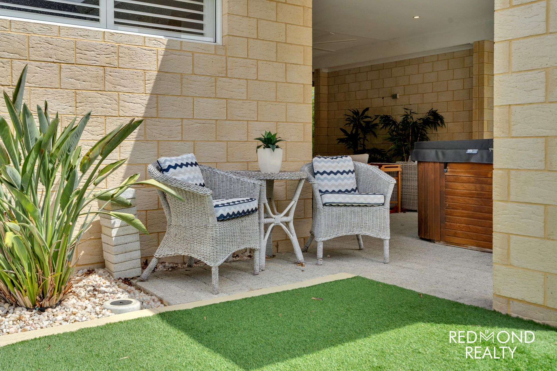 - Super-low maintenance gardens, synthetic lawn to front & rear