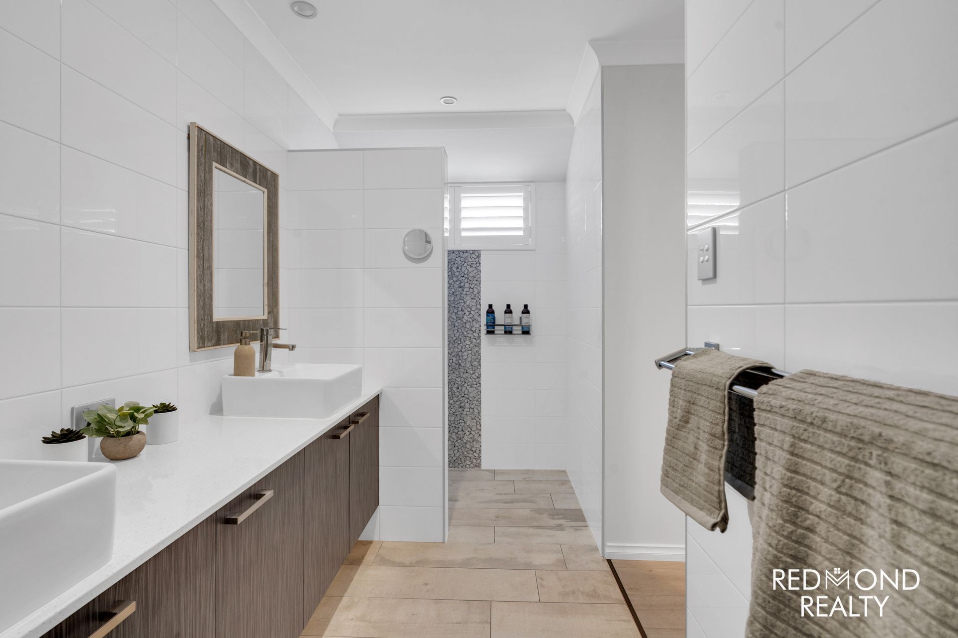 - Secluded Master bedroom suite with ‘His n Her’s walk-in robes, stunning ensuite bathroom with dual vanities, over-sized hobless shower, separate WC