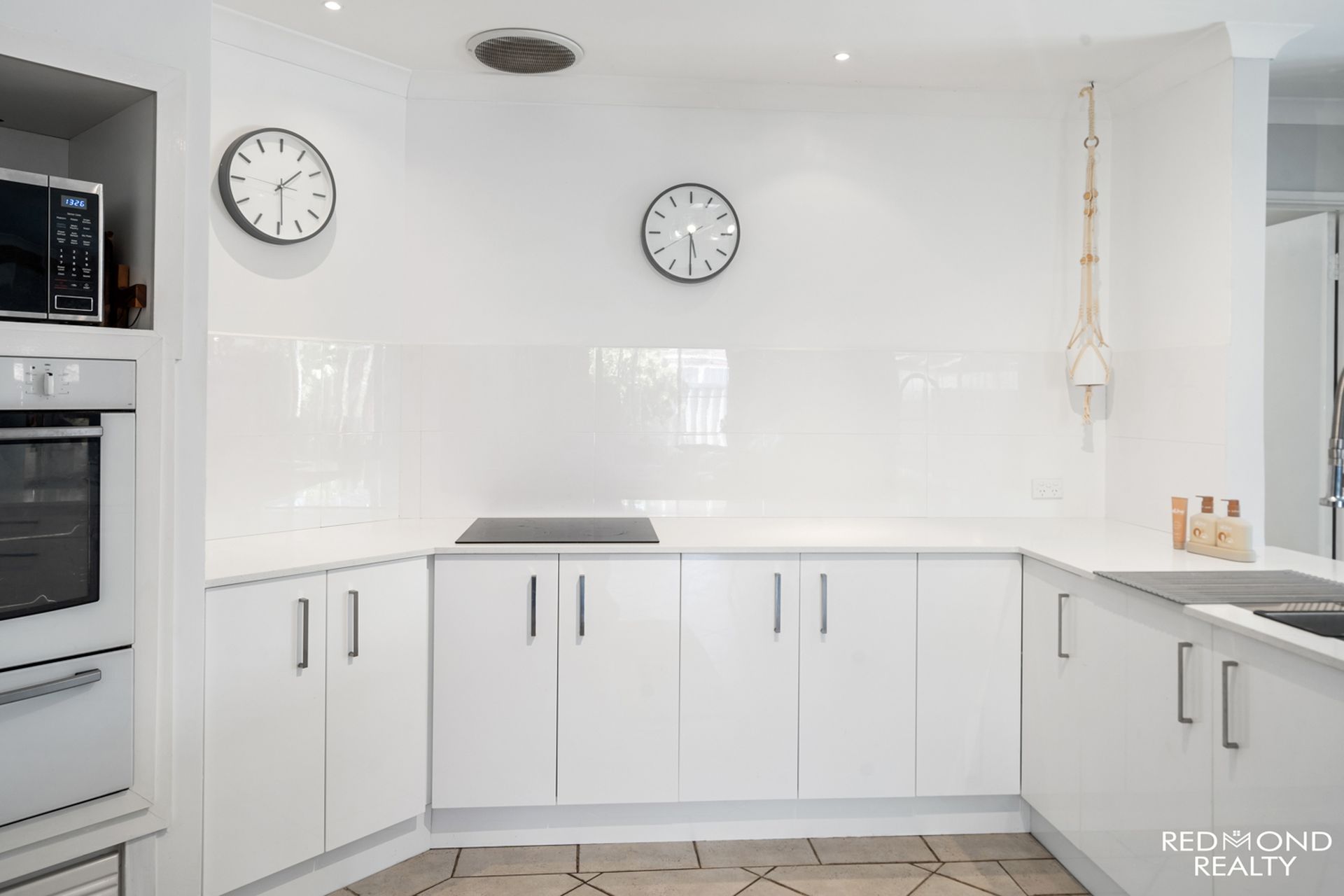 The stylish BRAND NEW kitchen with ‘cool-white’ cupboards and pot drawers, gleaming engineered stone benchtops, wall oven, microwave recess, electric cooktop, dishwasher, plumbed fridge recess and glossy white tiled splashback will inspire the keenest of home Chefs to create some culinary feasts.