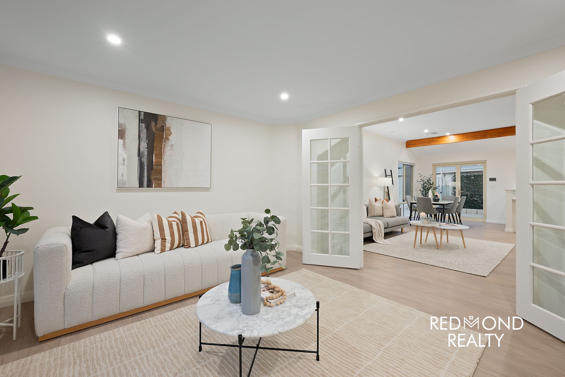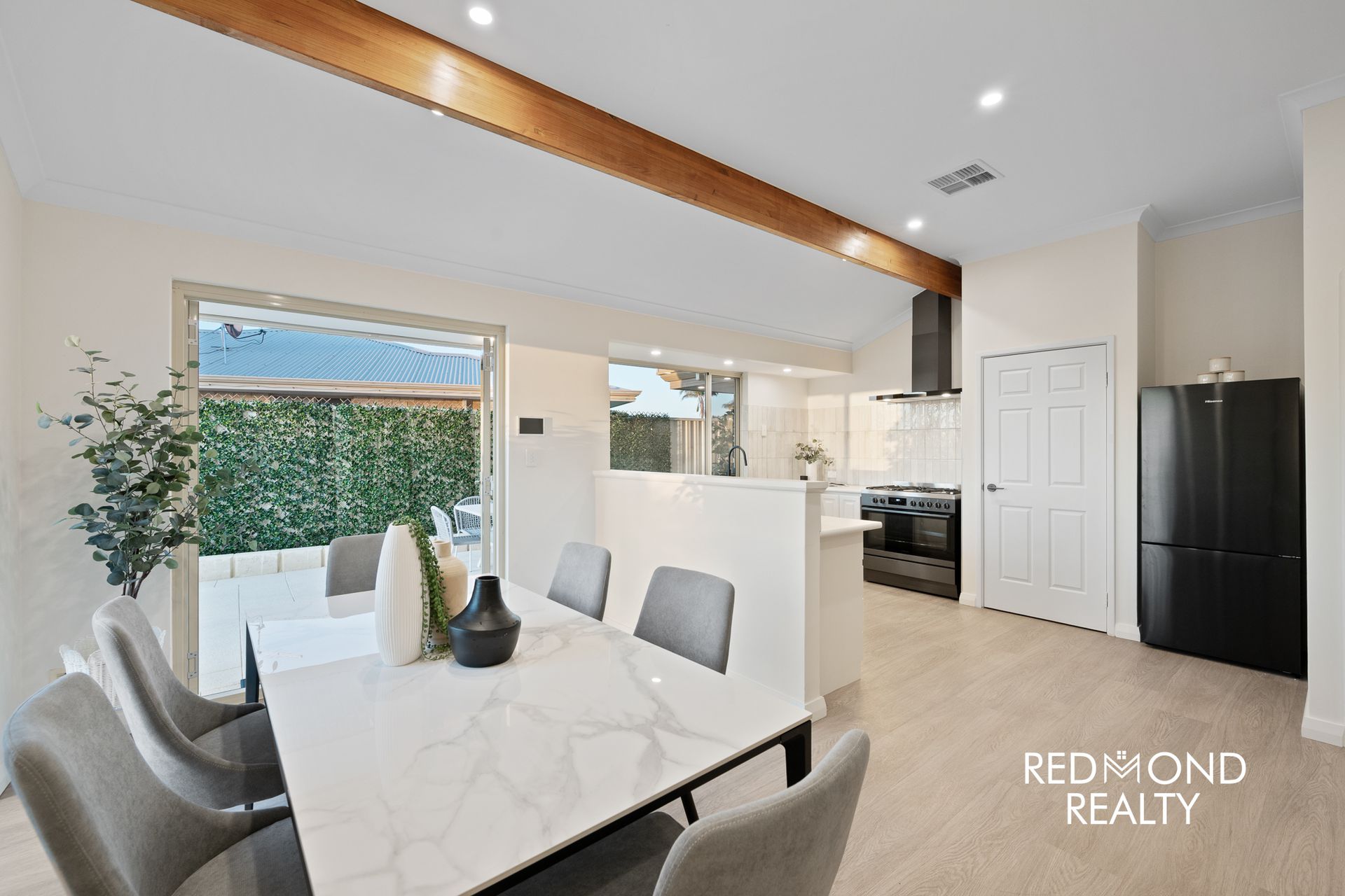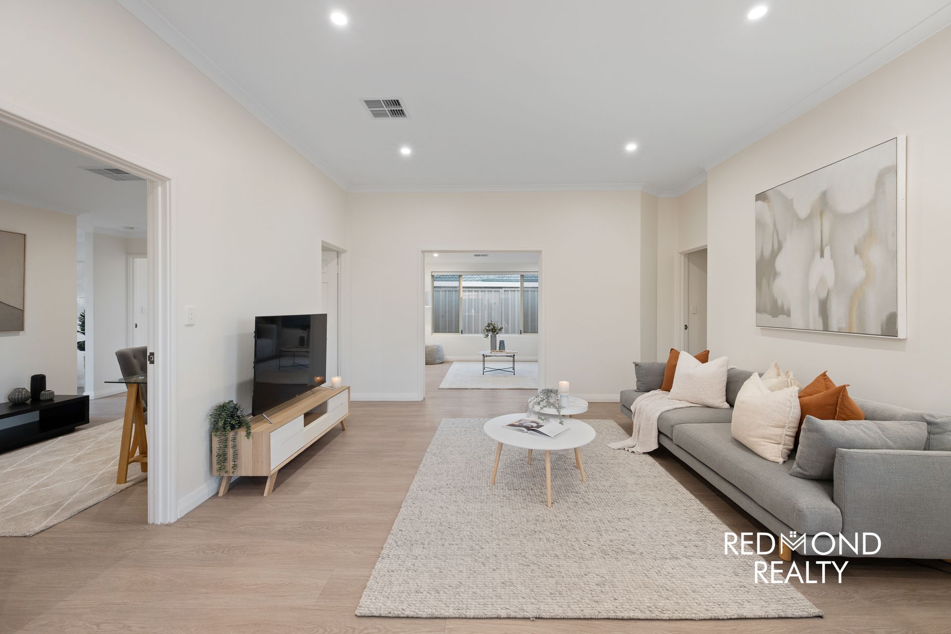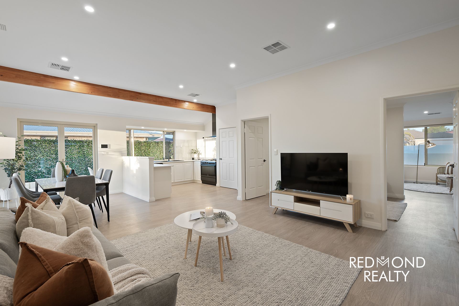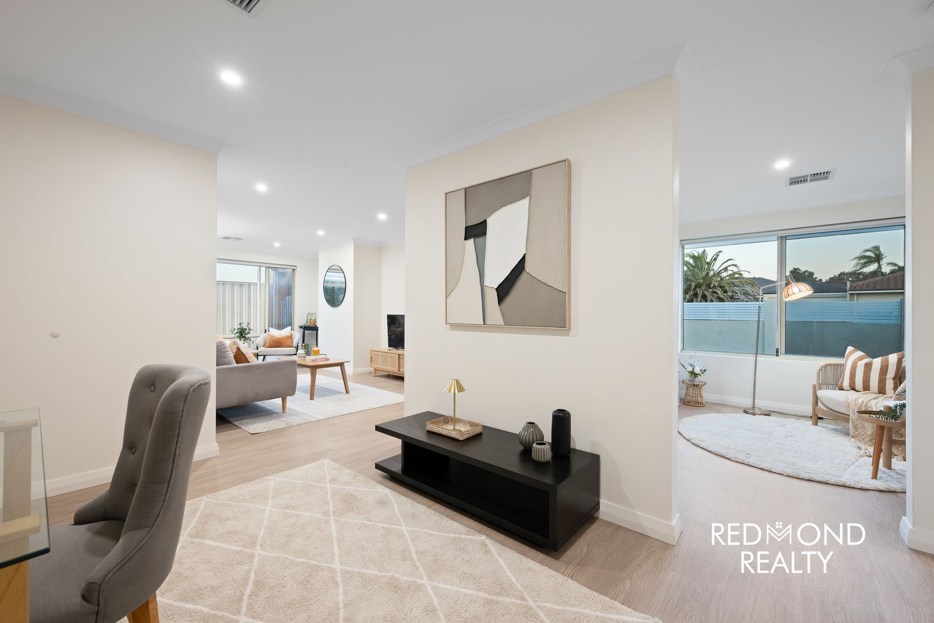 Set behind a newly enclosed front yard with lush lawn, the home opens into a thoughtfully designed floorplan offering exceptional separation of living and accommodation zones. Luxury vinyl plank flooring and fresh paint flow throughout, creating a cohesive, modern feel across every space.