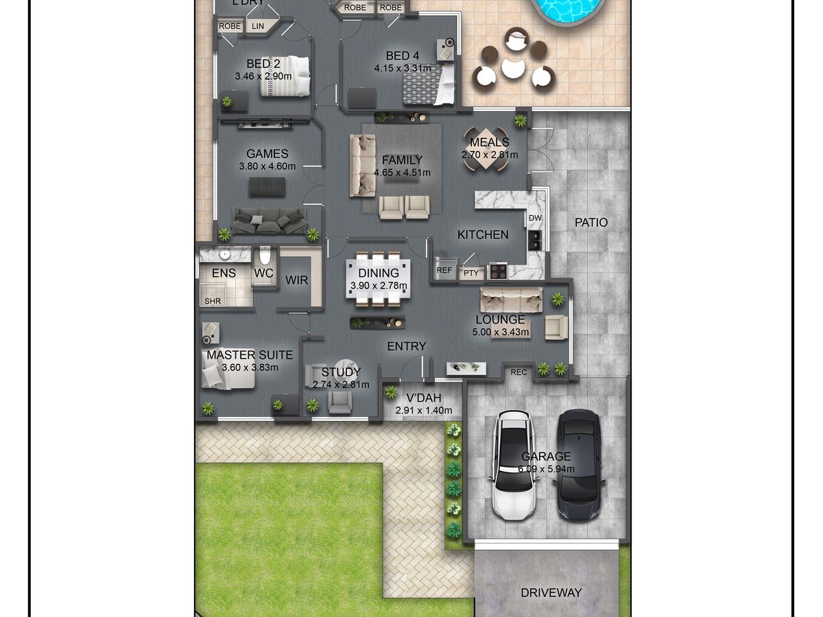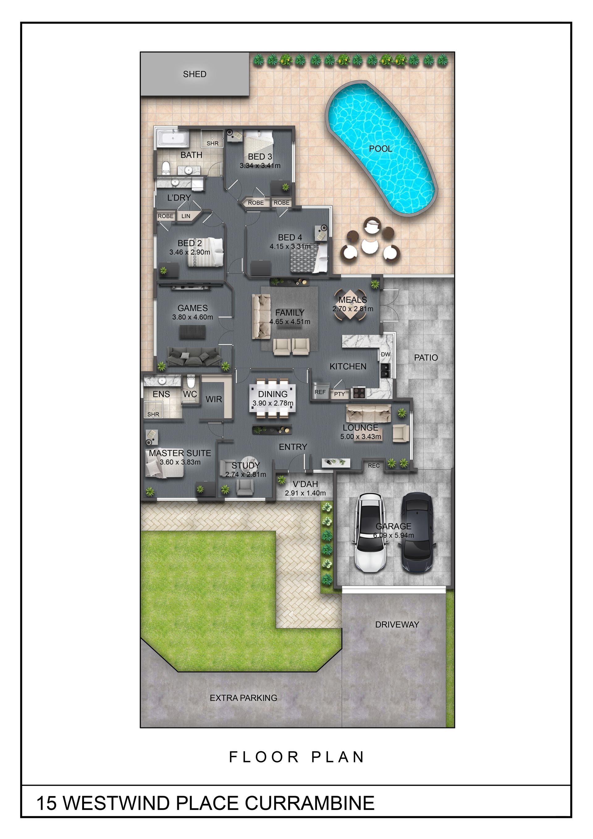 Multiple living areas provide flexibility for families of all stages, including a separate enclosed theatre or games room, a formal lounge and dining area that can adapt to your needs, plus a dedicated study ideal for working from home or homework space.