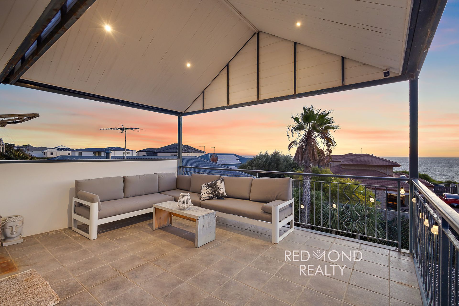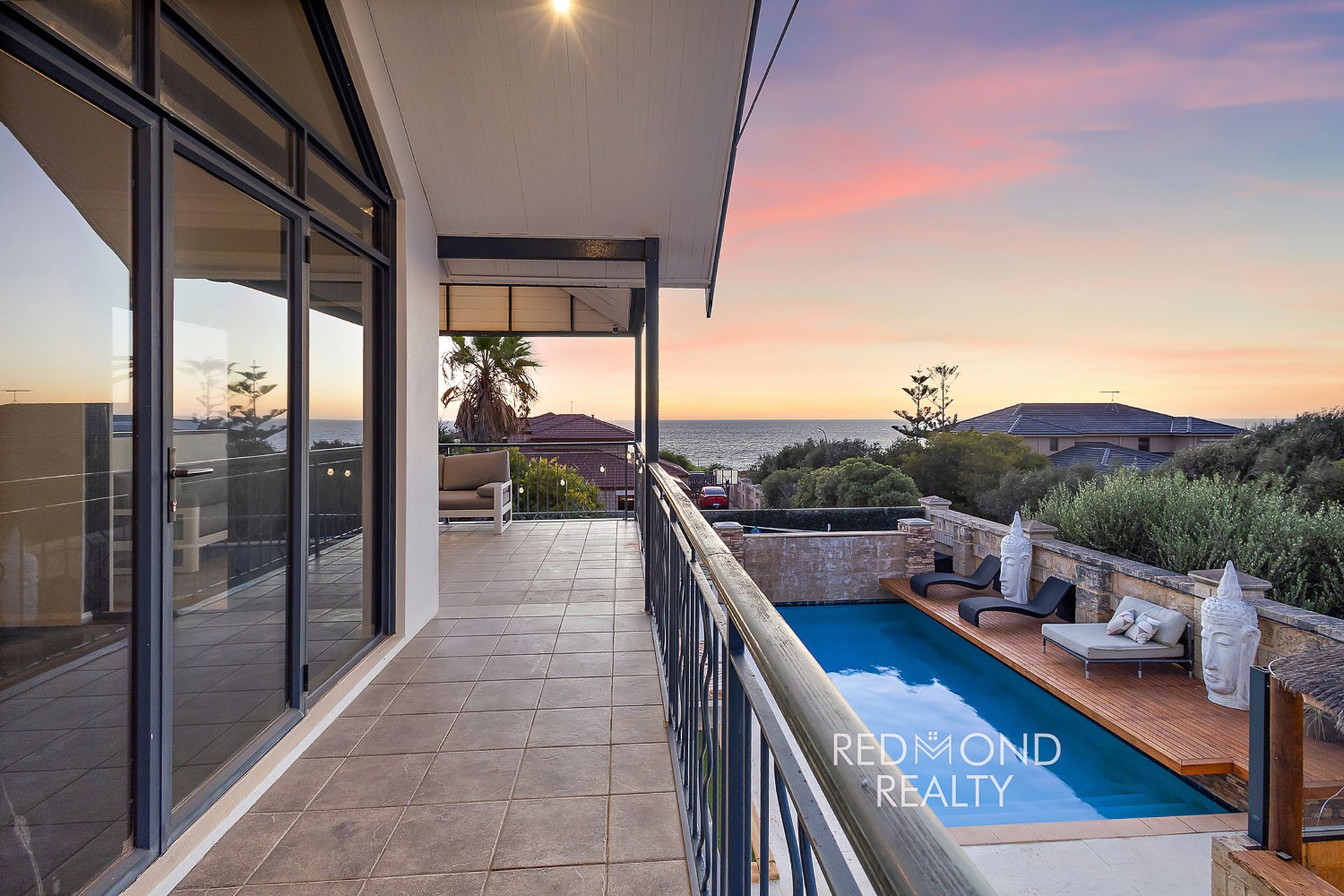 Designed for space, versatility and effortless entertaining, the home offers multiple living zones across both levels, including a fully fitted theatre room and expansive upstairs retreat. The master suite commands ocean views and opens to a wrap-around balcony, the perfect setting for sunset evenings.