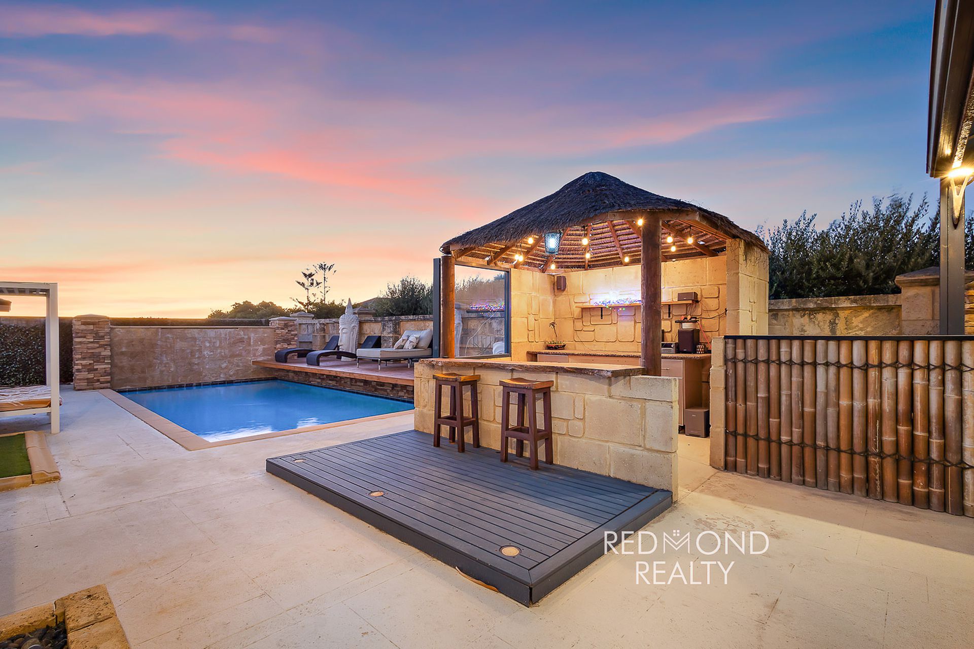 Resort-style backyard with:
