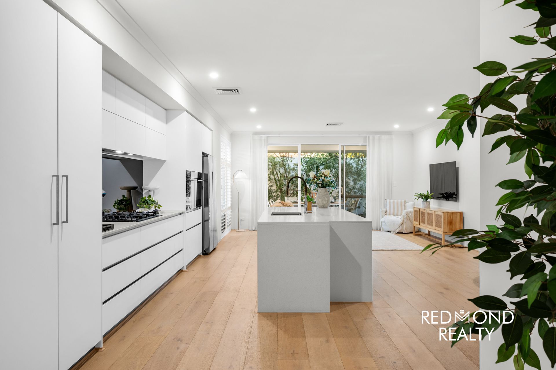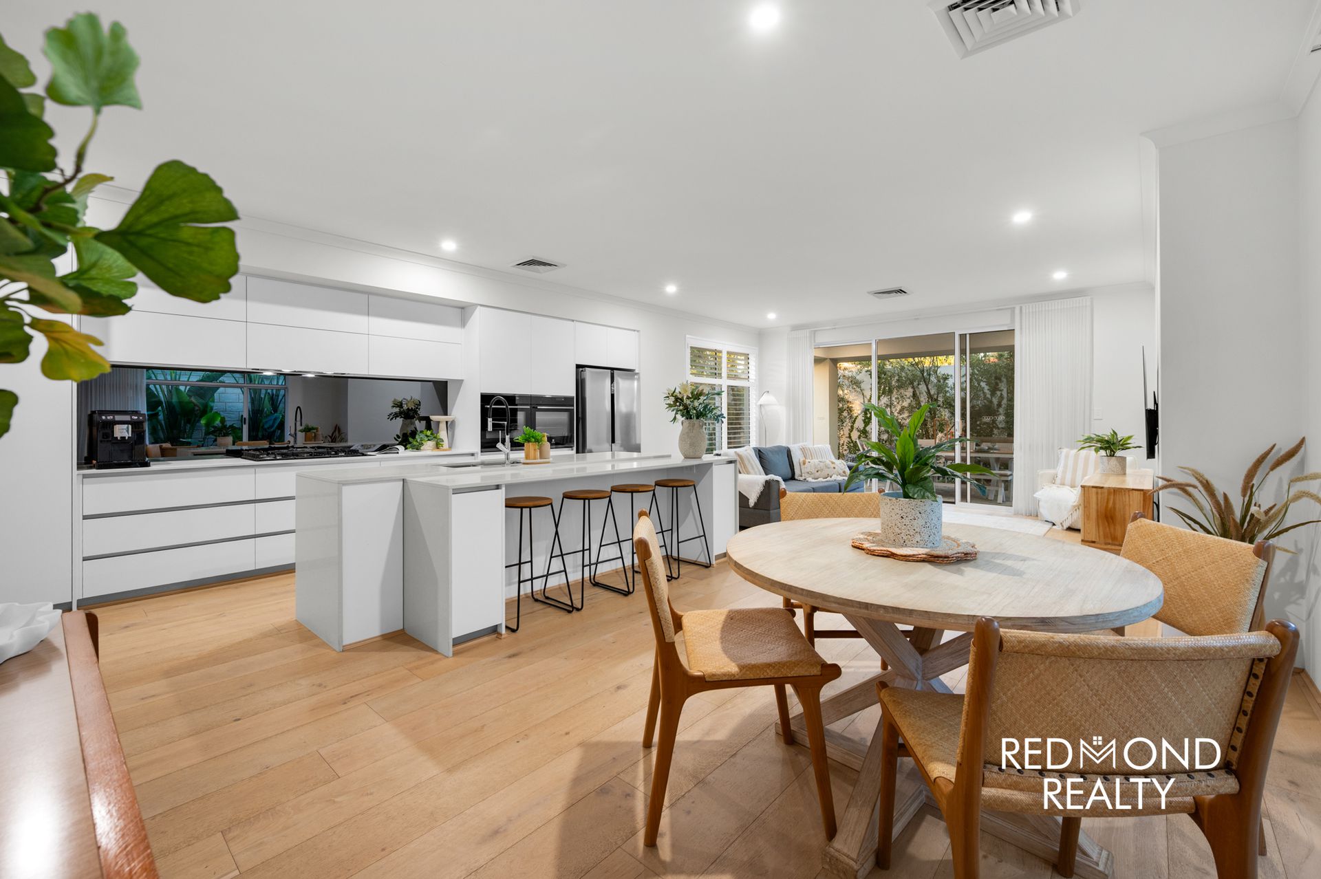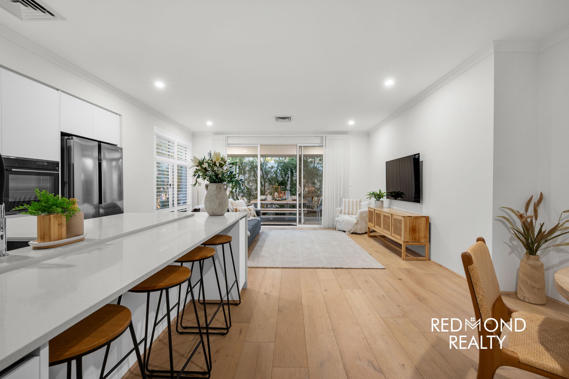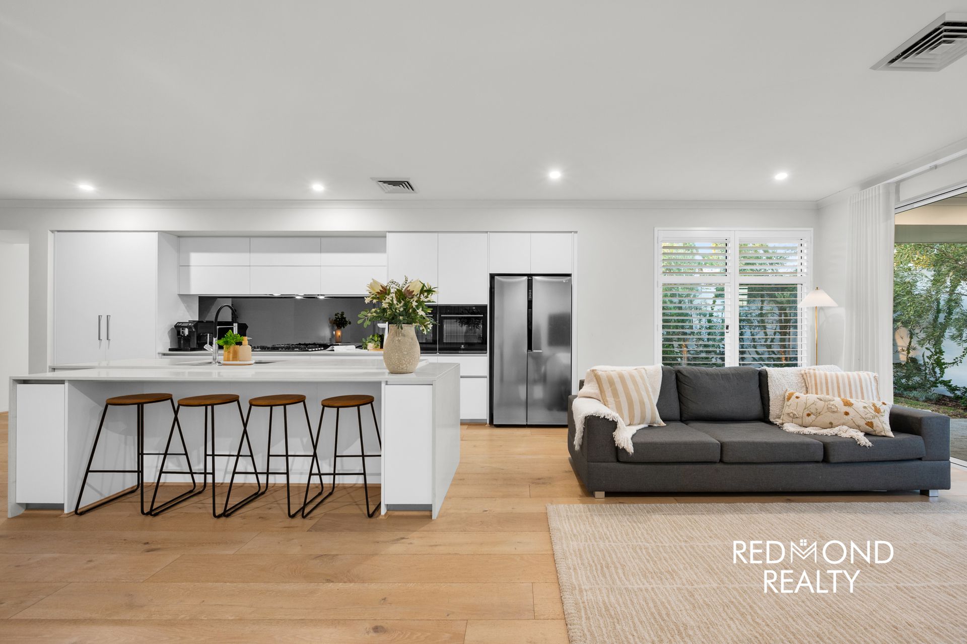 Behind striking vertical slat fencing, a peaceful sense of privacy sets the tone. Step through the wide designer entry and you’re welcomed by warm engineered wood flooring, soaring ceilings and soft natural light that moves effortlessly through the home. Every detail has been thoughtfully finished to create a space that feels refined yet incredibly liveable.