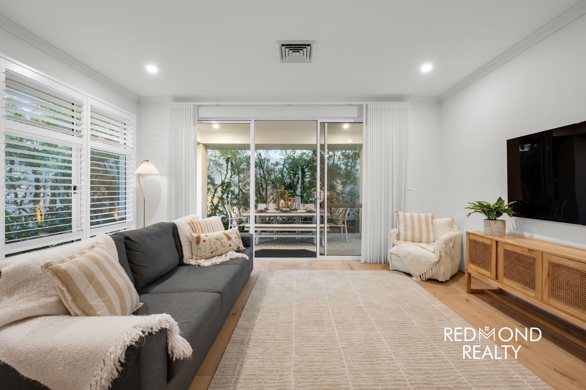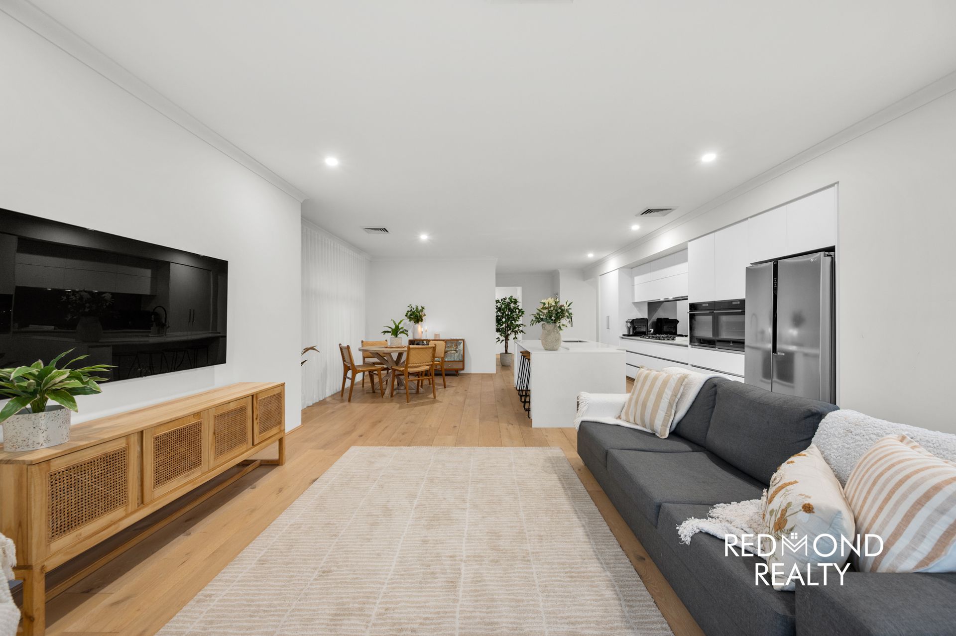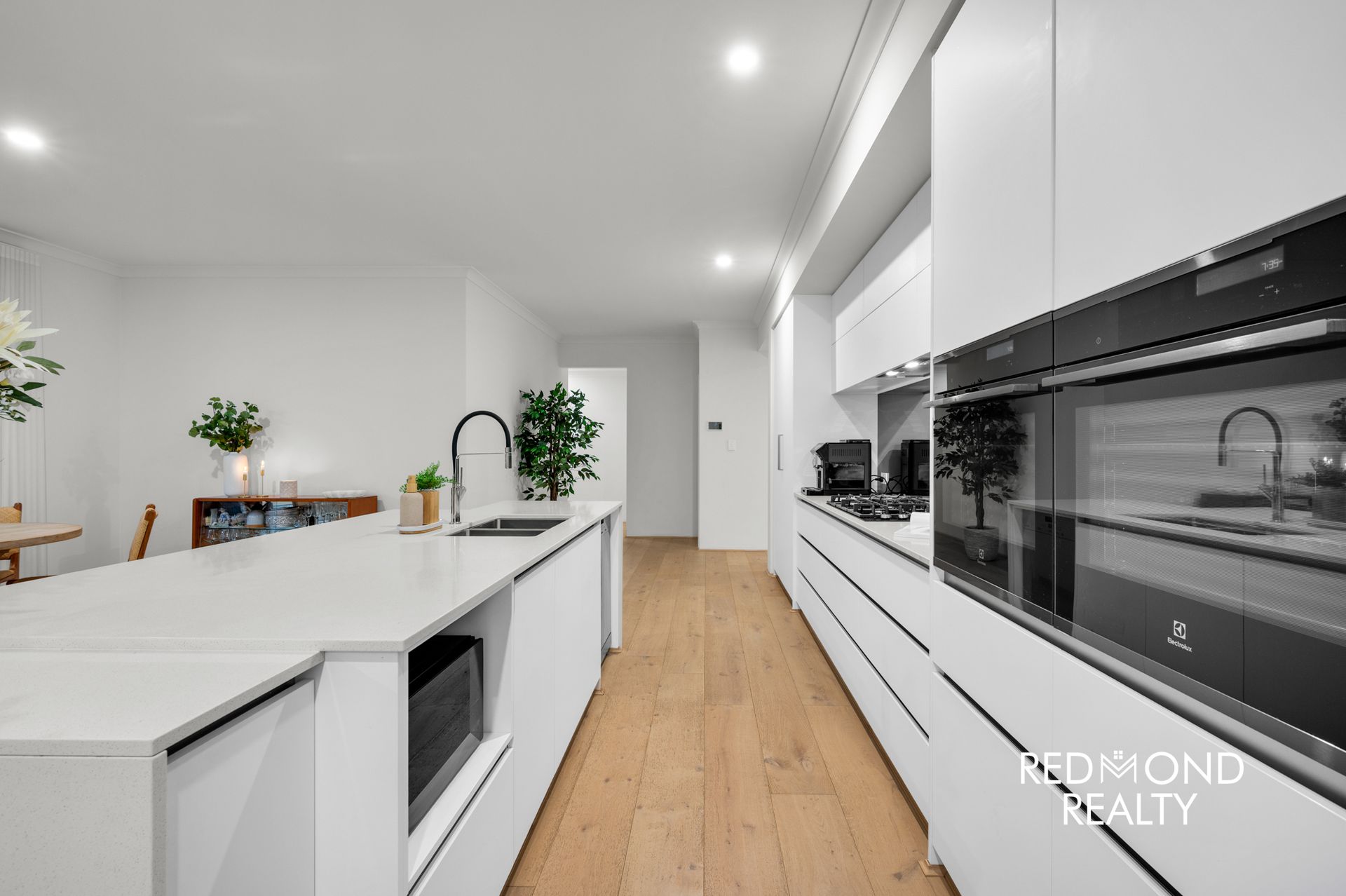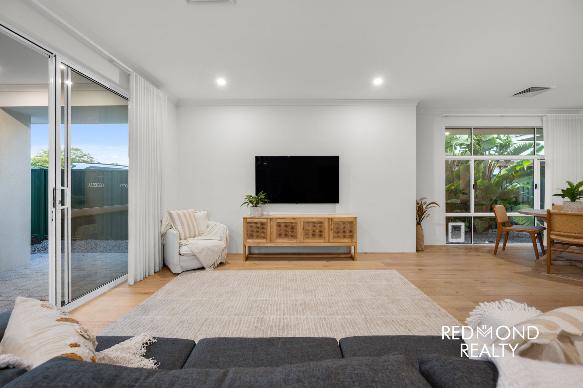Behind striking vertical slat fencing, a peaceful sense of privacy sets the tone. Step through the wide designer entry and you’re welcomed by warm engineered wood flooring, soaring ceilings and soft natural light that moves effortlessly through the home. Every detail has been thoughtfully finished to create a space that feels refined yet incredibly liveable.