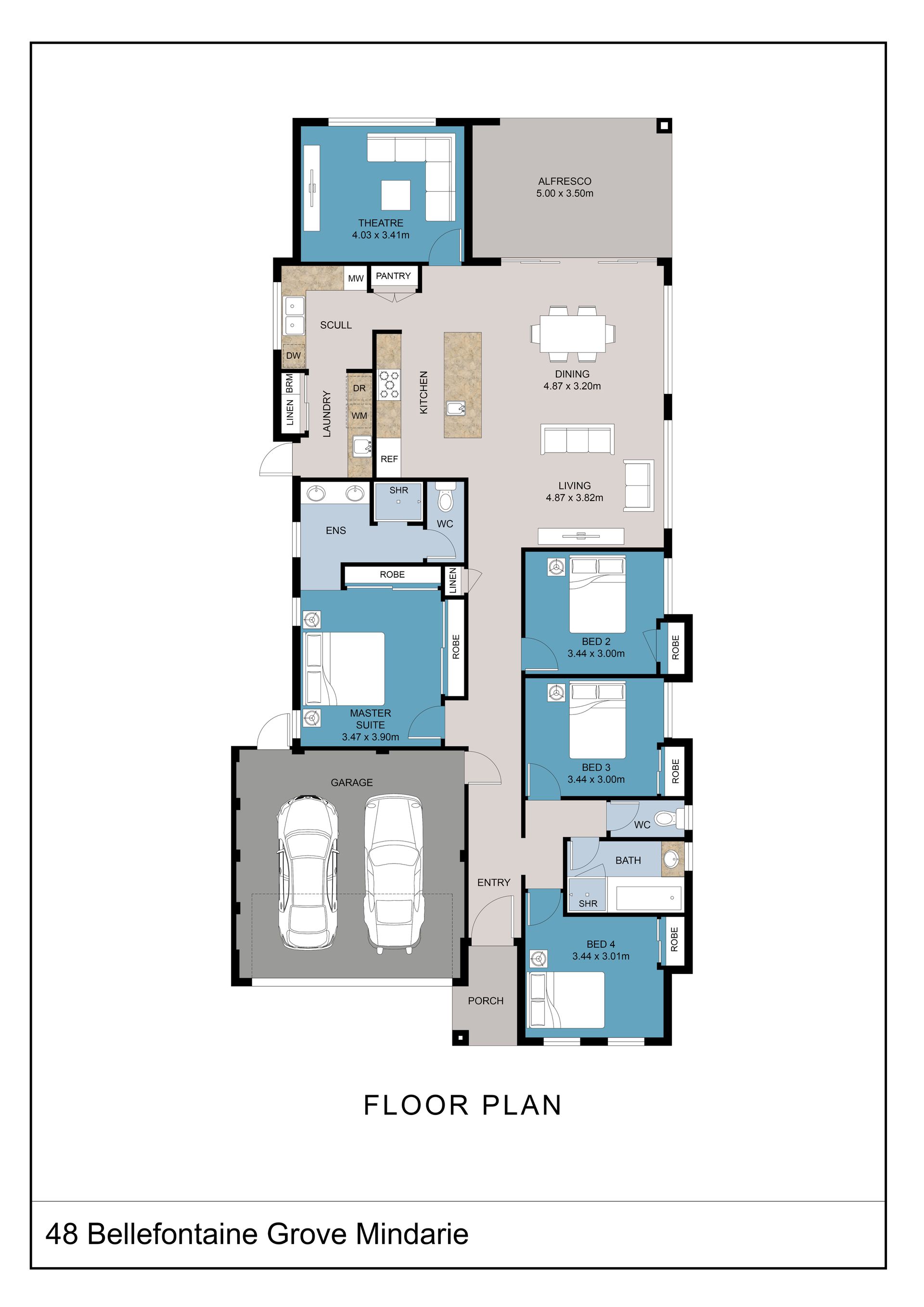 A separate theatre room to the rear of the home away from the bedrooms, provides the perfect space to relax, unwind, or enjoy movie nights in comfort.