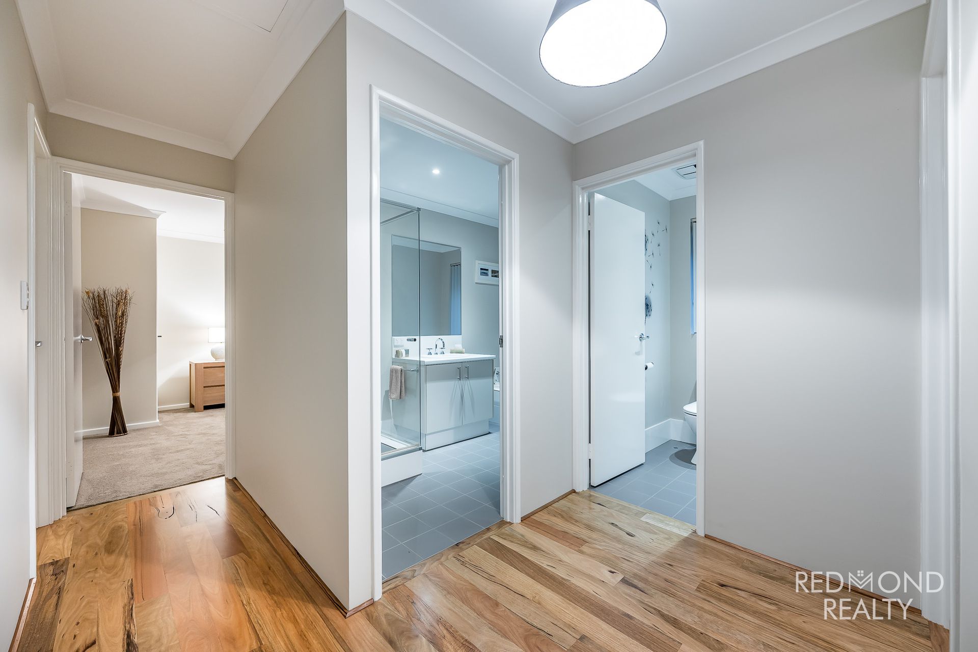 The secondary bedrooms are all generously sized and easily accommodate queen beds, making them ideal for children, teenagers, guests or even a home office setup. Serviced by a well-designed family bathroom with separate powder room, the layout offers excellent separation between the master suite and minor bedrooms for added privacy.