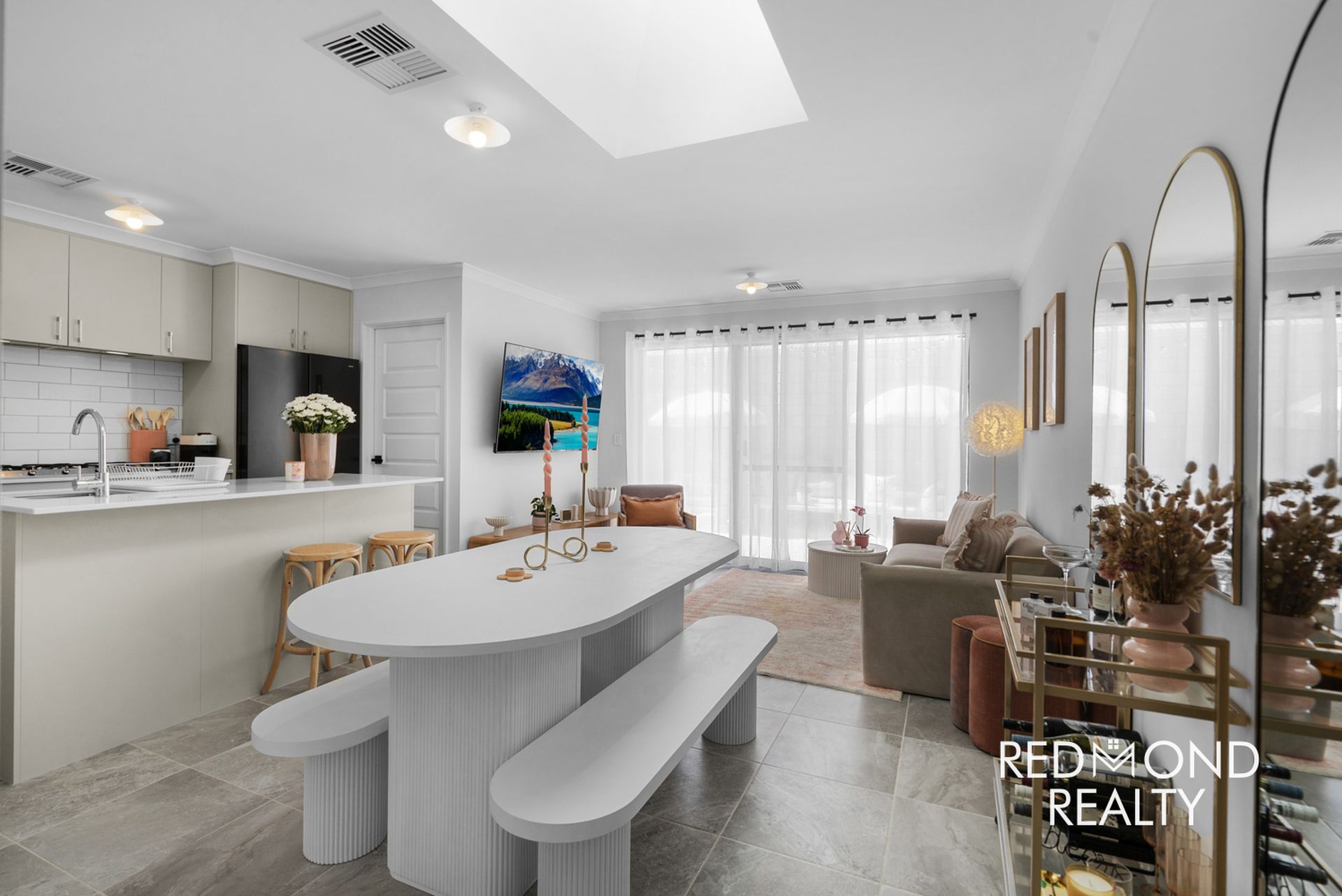 Open plan living and dining area with stunning skylight letting natural light in the living area