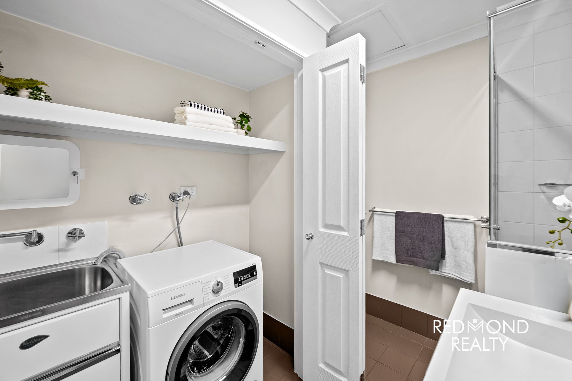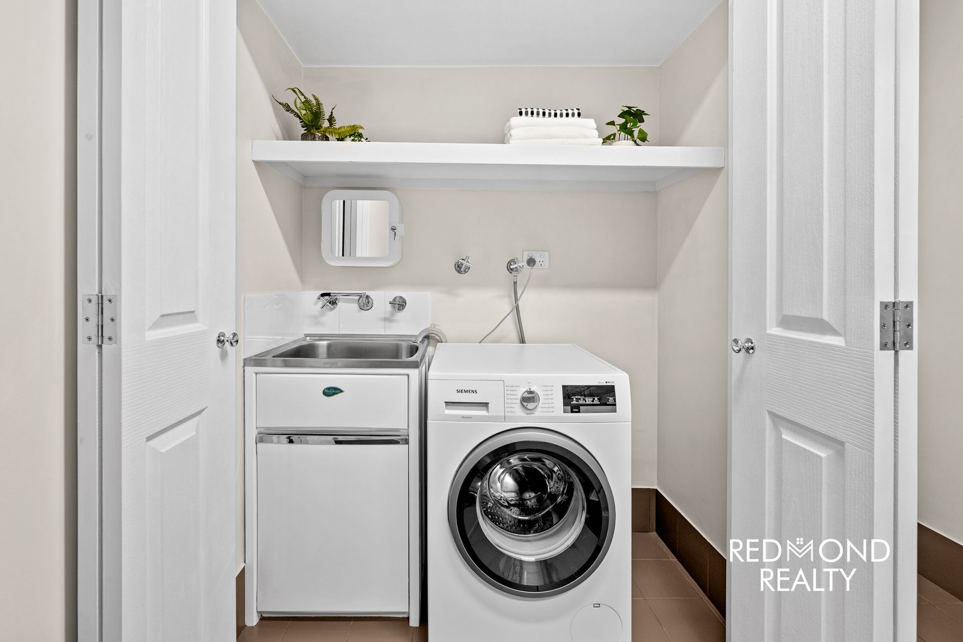 The Queen size master bedroom features a generous built-in robe, bedroom 2 is verstaile and can be used as a bedroom, nursery or study. The bathroom presents in fresh, neutral tones and incorporates a cleverly concealed laundry nook with additional storage.