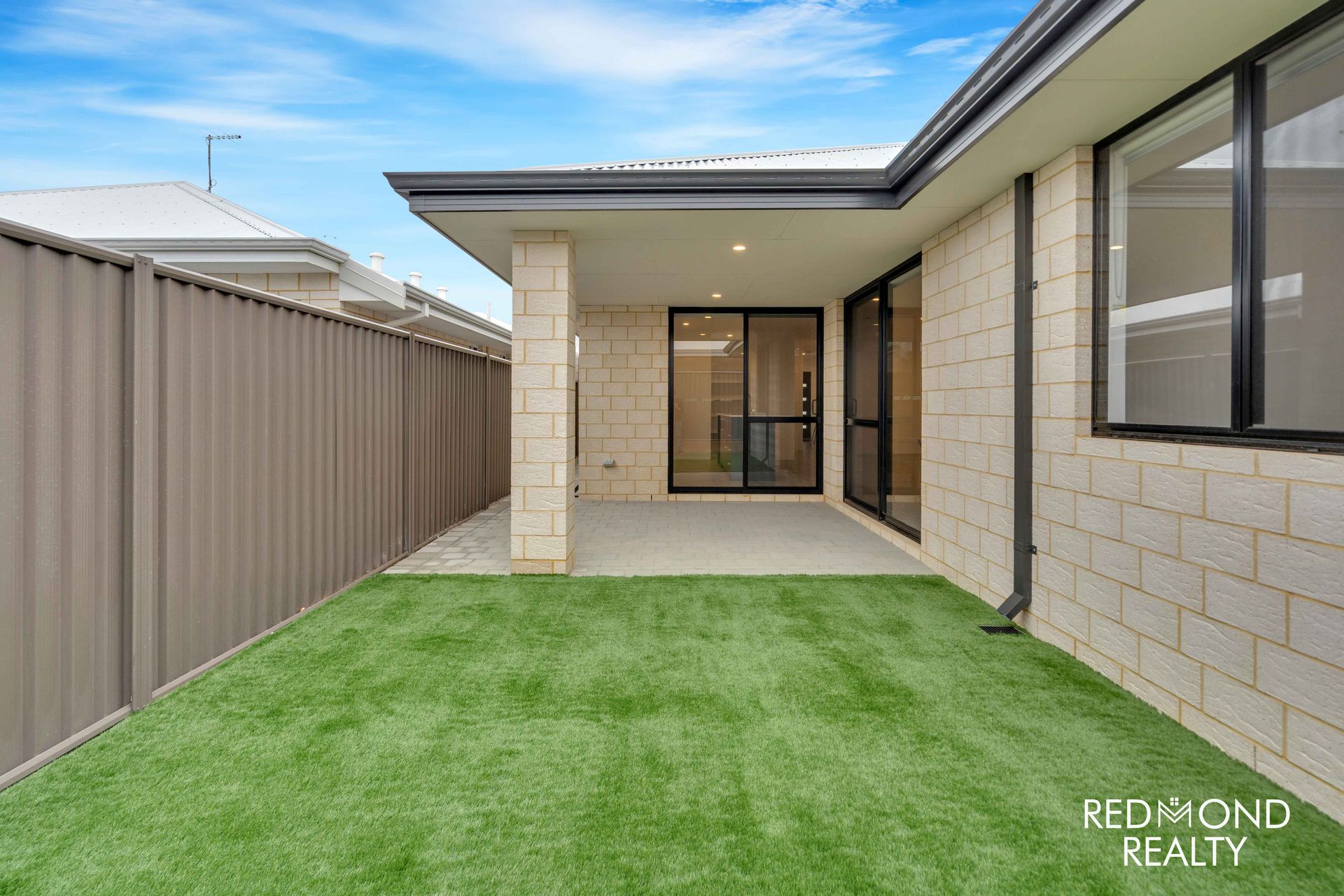 Low maintenance artificial lawn backyard